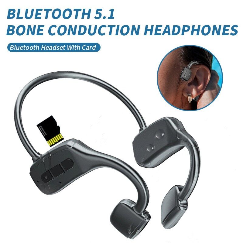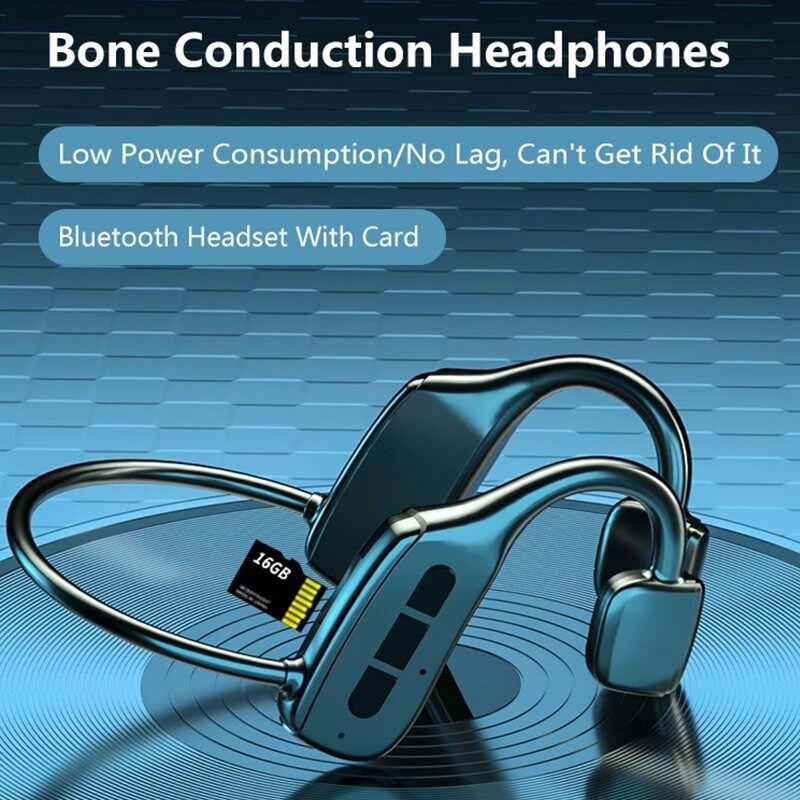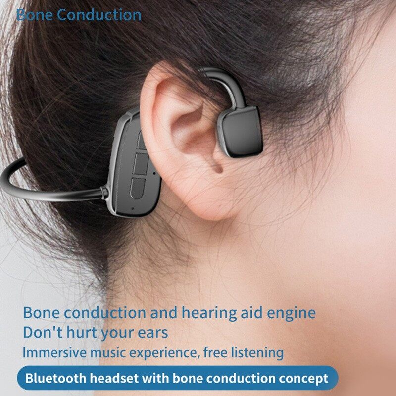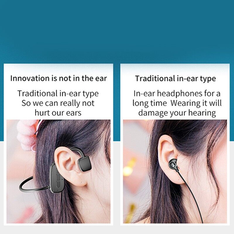 Eshop G2 Bone Conduction Headphones Waterproof Sweatproof Wireless Bluetooth 5.0 Sports Earphone Stereo Painless Ear Hook Running Headset Support SD/TF Memory Card Play Stereo Hifi Music Headphone wit