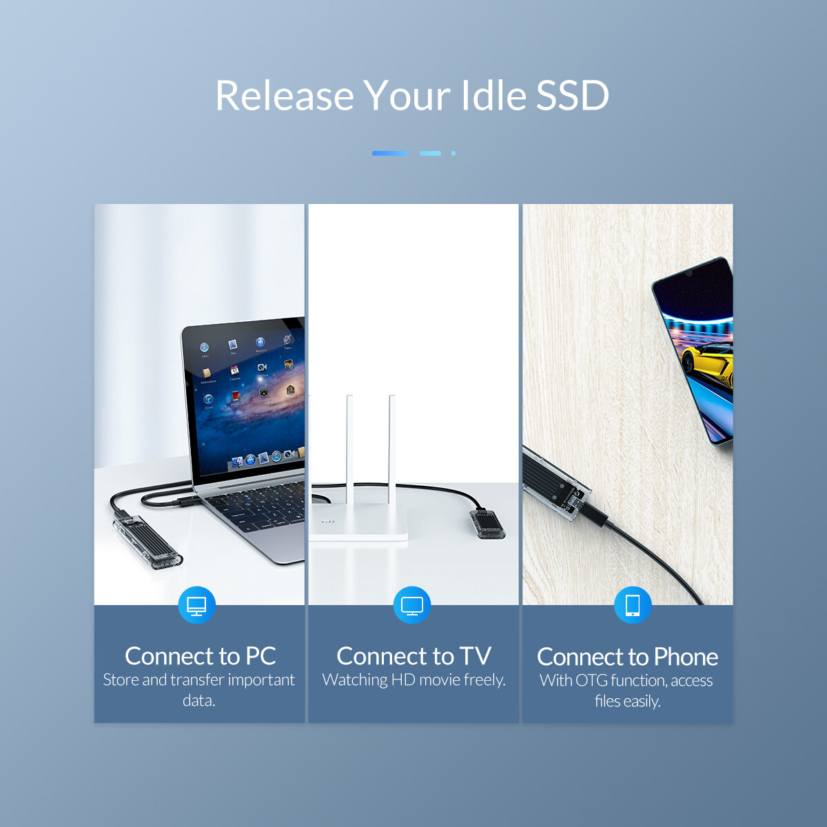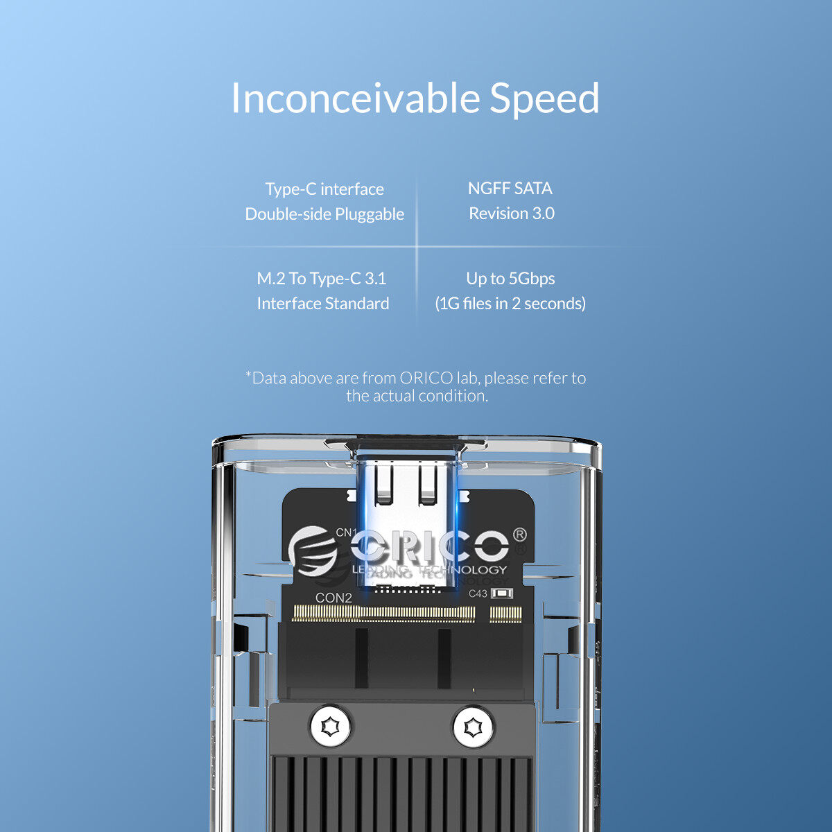 ORICO SATA M.2 NGFF SSD Case 5Gbps Support UASP Protocol USB3.1 Gen1 Type-C Mini Transparent SSD Enclosure With C to C and C to A Cable(TCM2F)