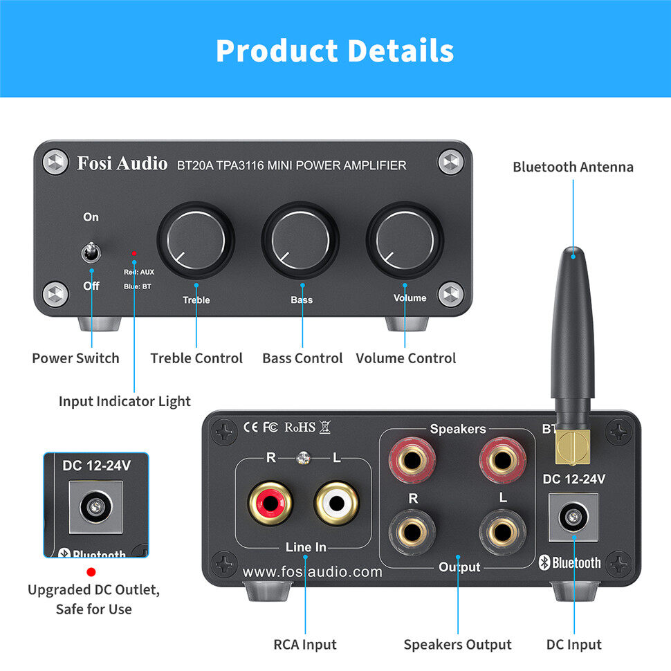 Advanced circuitry design, built-in speakers protection circuit, best for bookshelf/computer/desktop/speakers in your home;