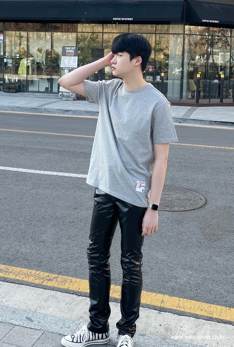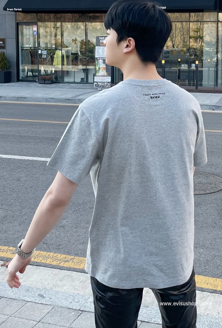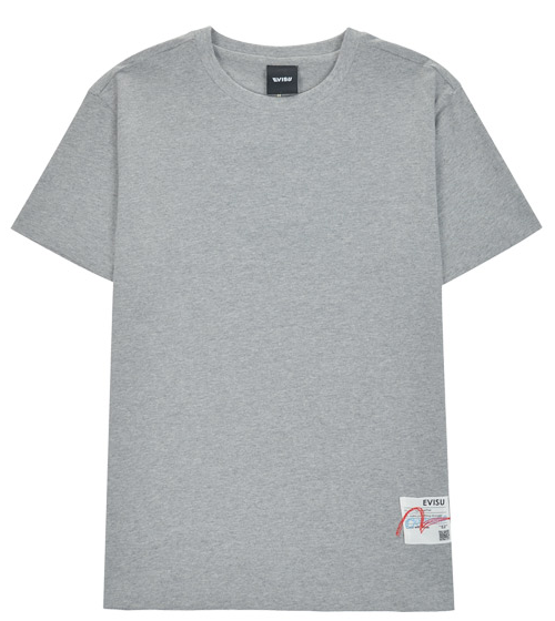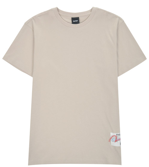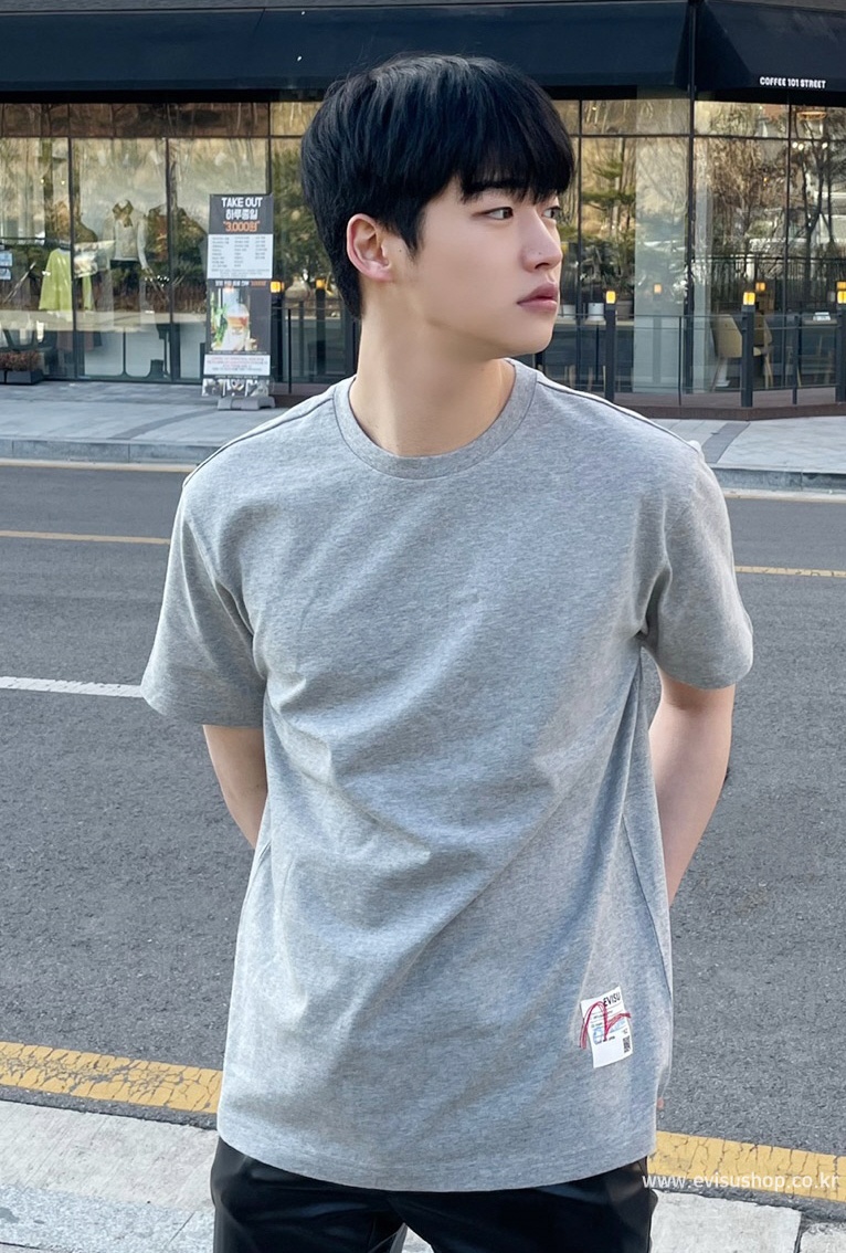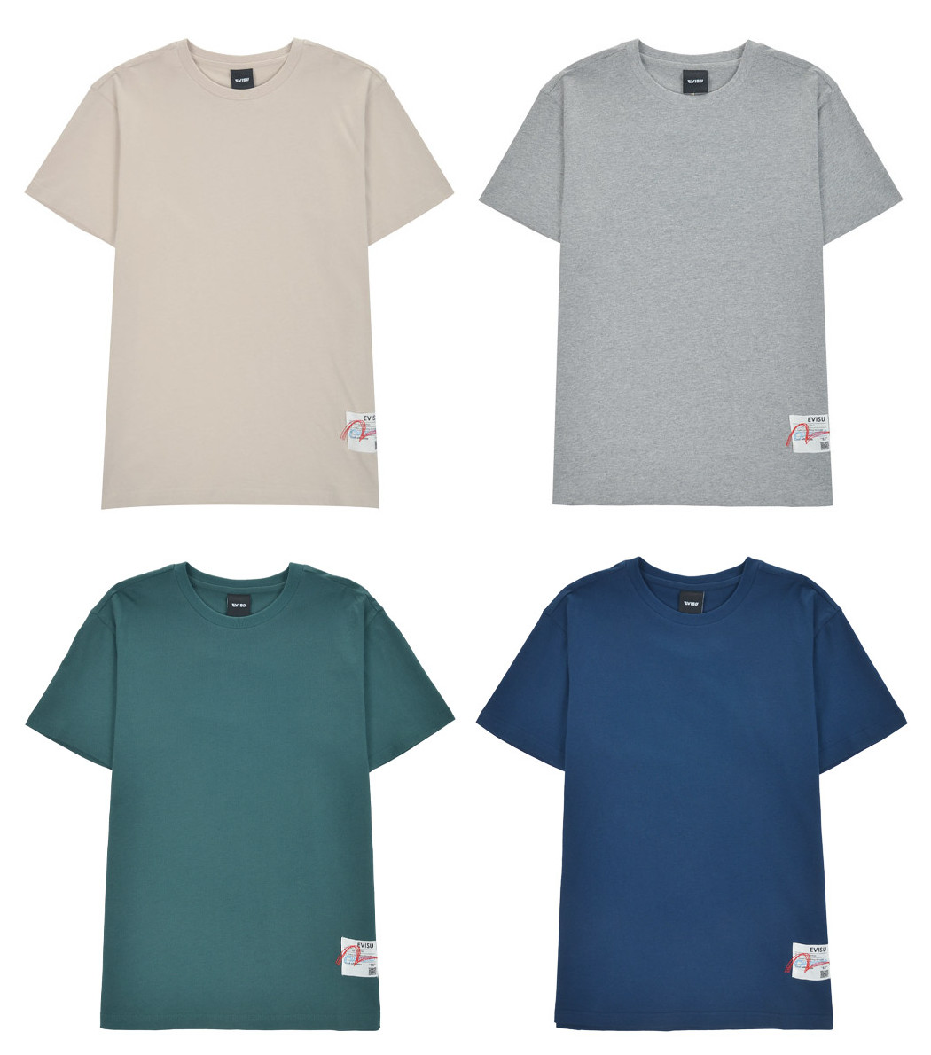 [EVISU KOREA] Loose fit Hem point label Round Short-sleeve T-shirt Casual Men Women Tee Couple Tops Cotton Street Style Korean Fashion