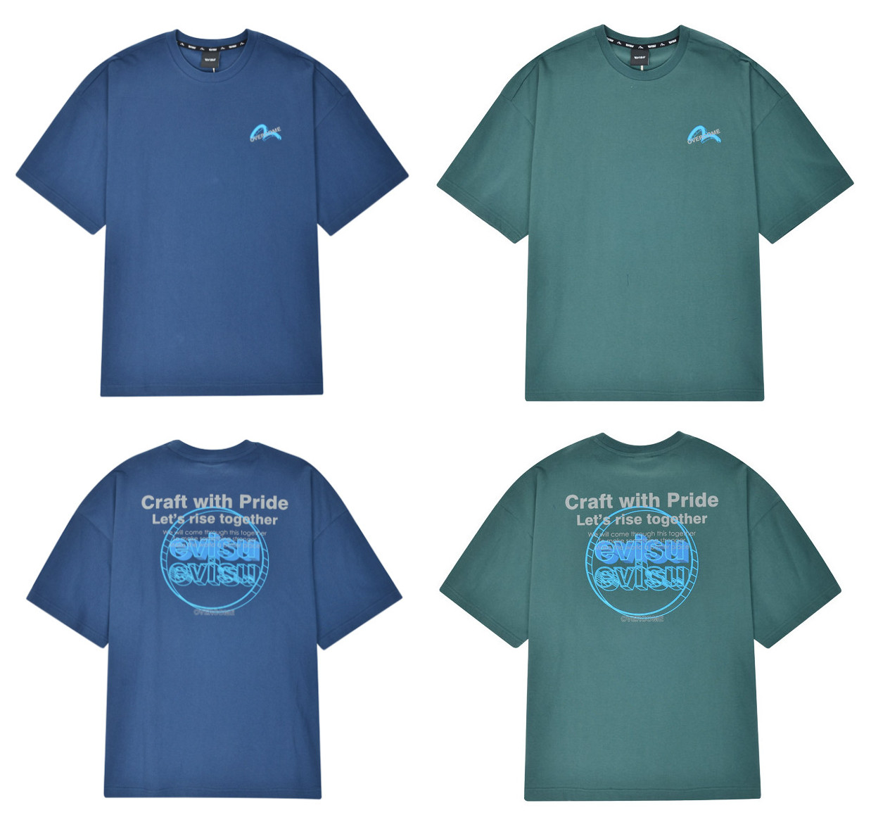 [EVISU KOREA] Overfit Backboard Reflective Printing English Lettering Short-sleeve T-shirt Casual Men Women Tee Couple Tops Cotton Street Style Korean Style