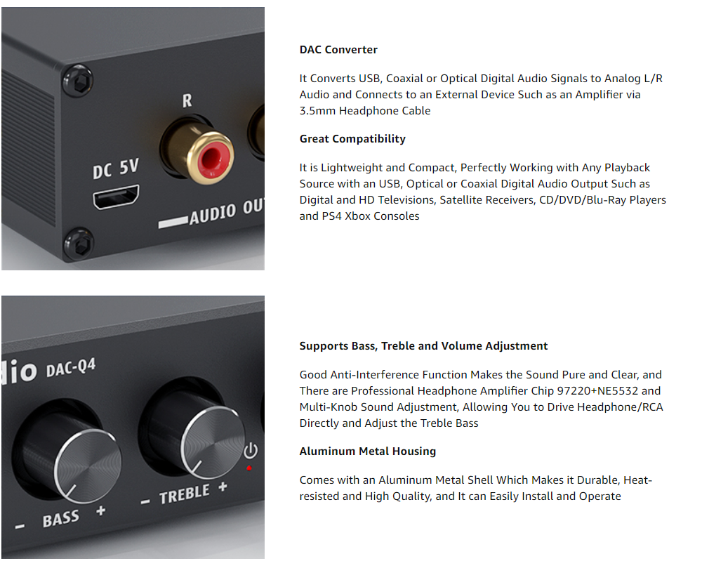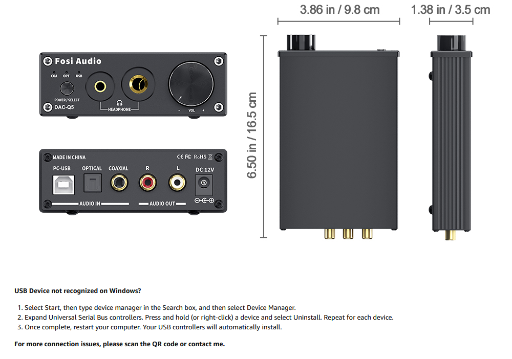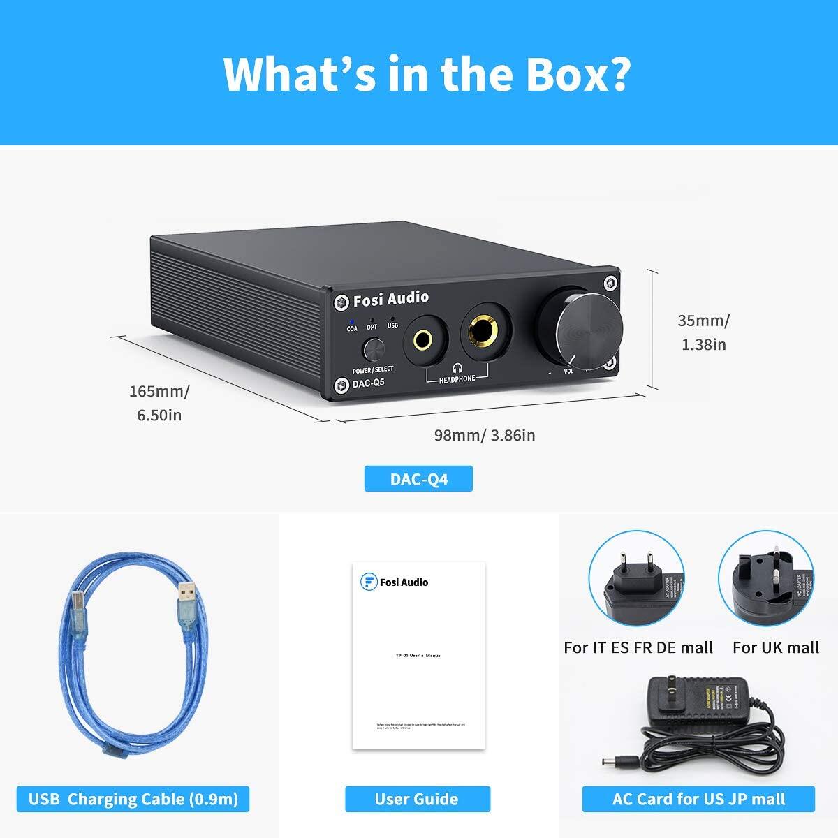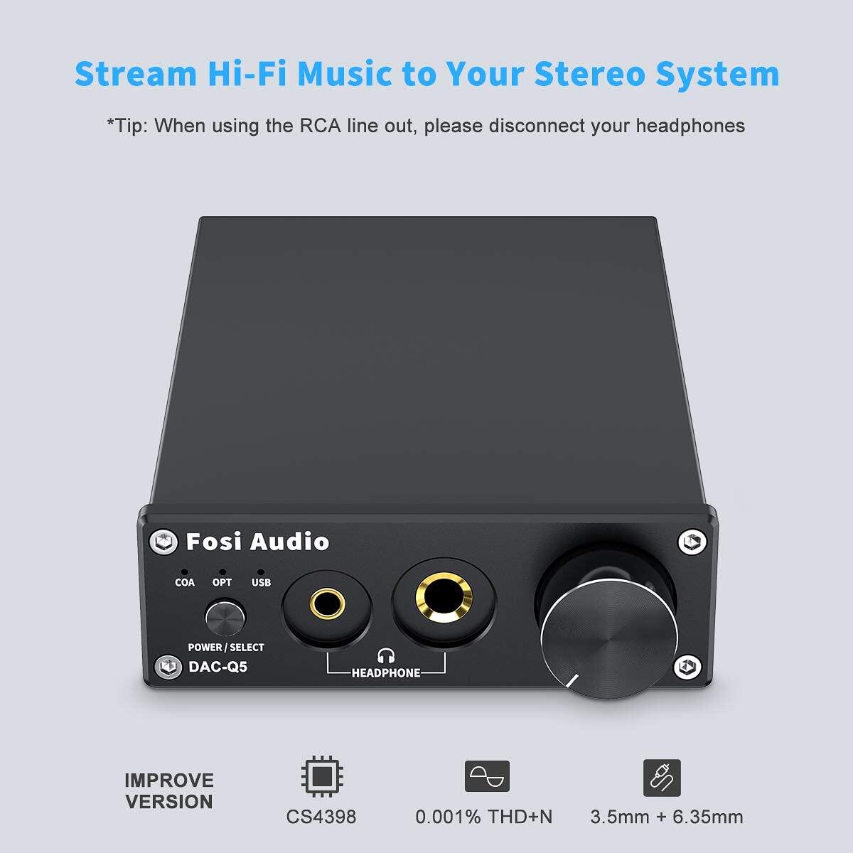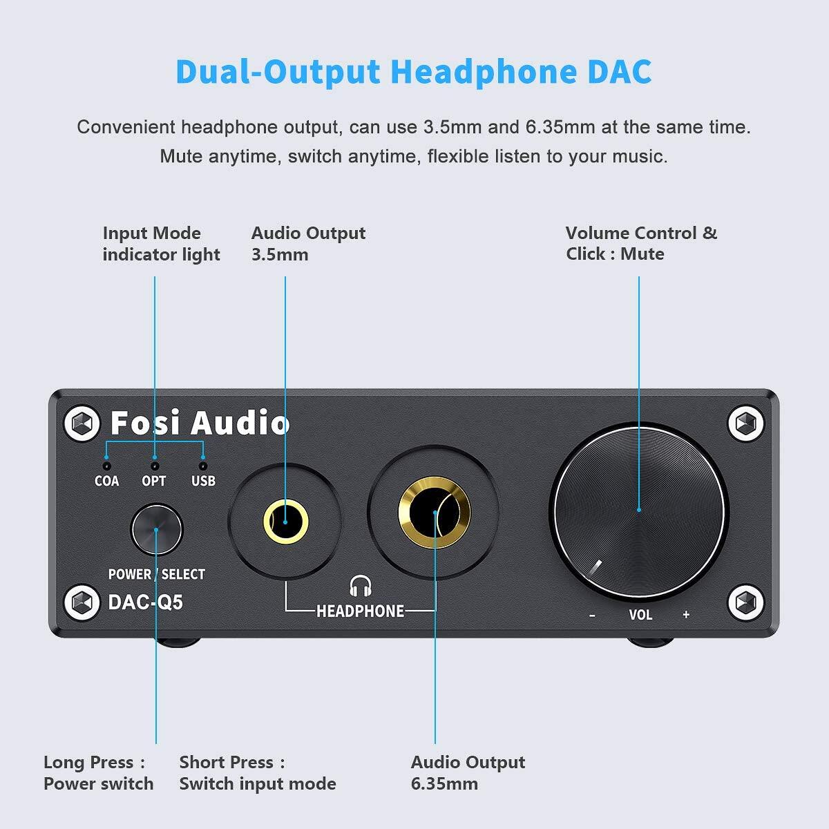 Fosi Audio Q5 DAC Converter USB Digital-to-Analog Adapter Decoder & Headphone Amplifier & Mini Stereo PreAmplifier Amplificador With 12V Power Supply