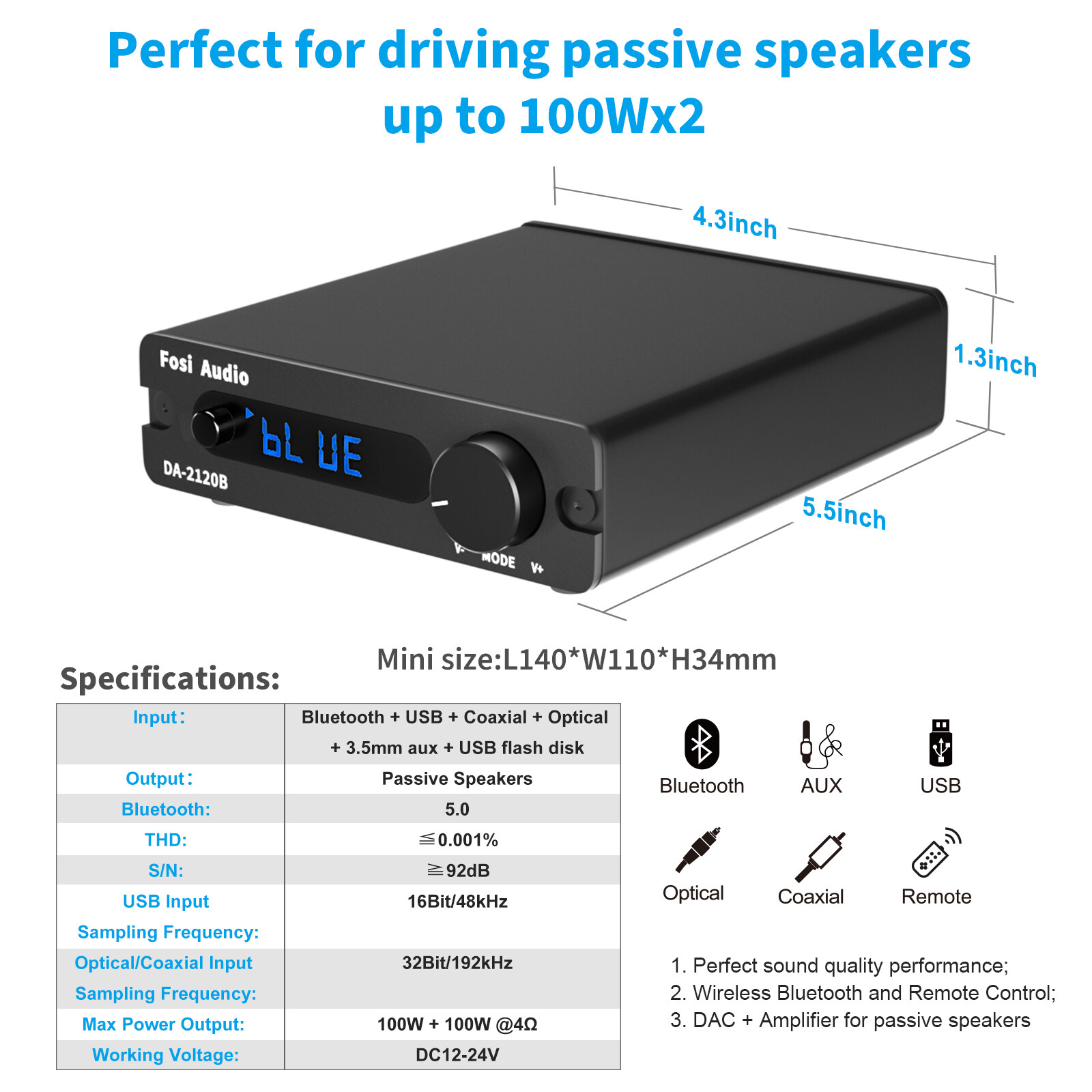 Input mode: Bluetooth + USB + coaxial
