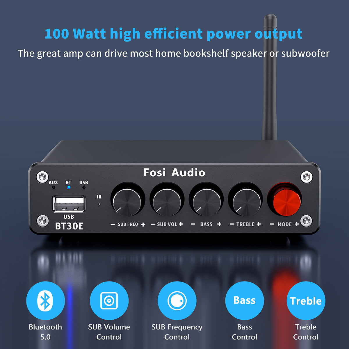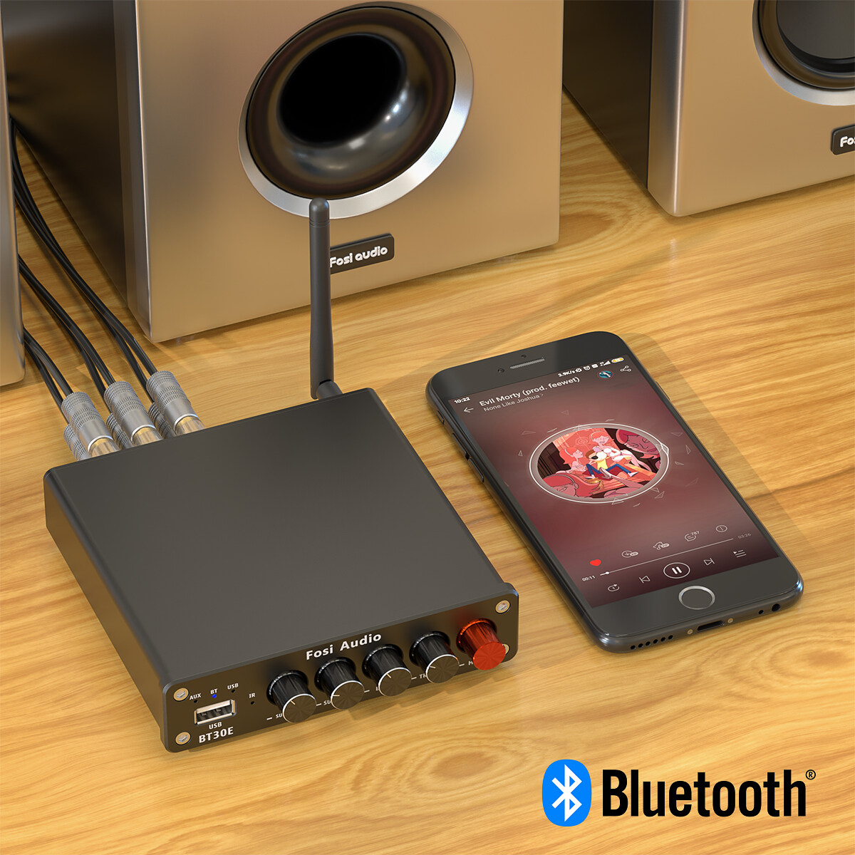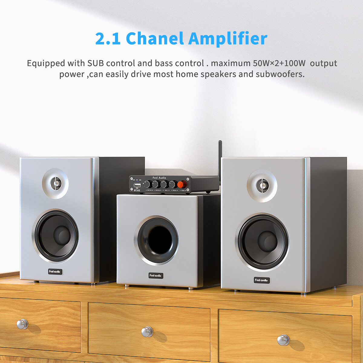 Fosi Audio Bluetooth 5.0 Sound Power Amplifier 2.1 Channel Integrated Amp & U-Disk Player Home Audio Subwoofer 100W BT30E With 24V Power Supply