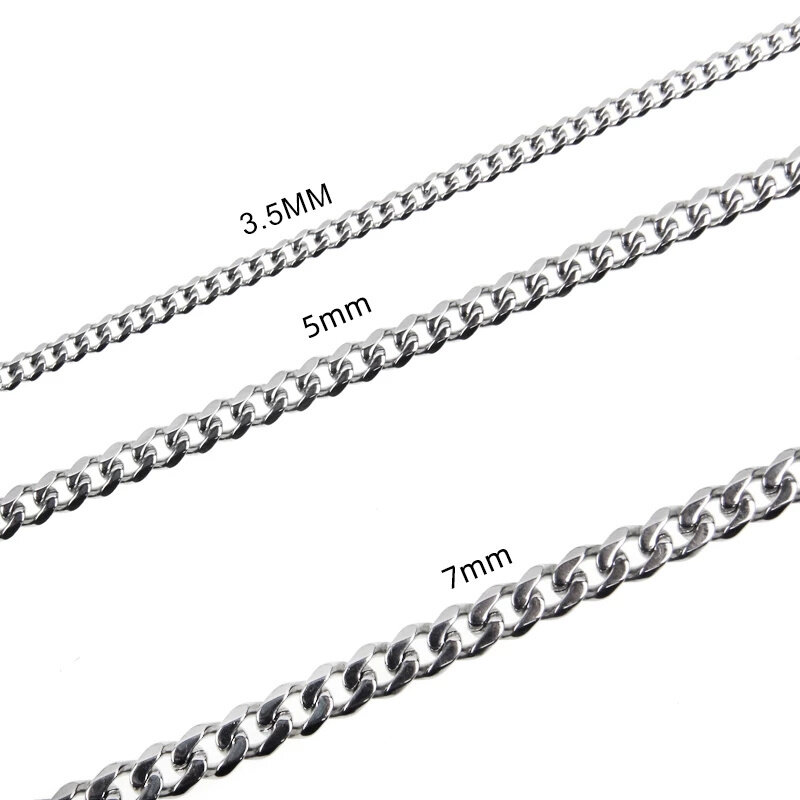 Specification Type: Necklace Treatment process: electroplating Style: Unisex Material: Alloy Size: length 60cm, width 3.5/5/7cm Color: silver Quantity: 1