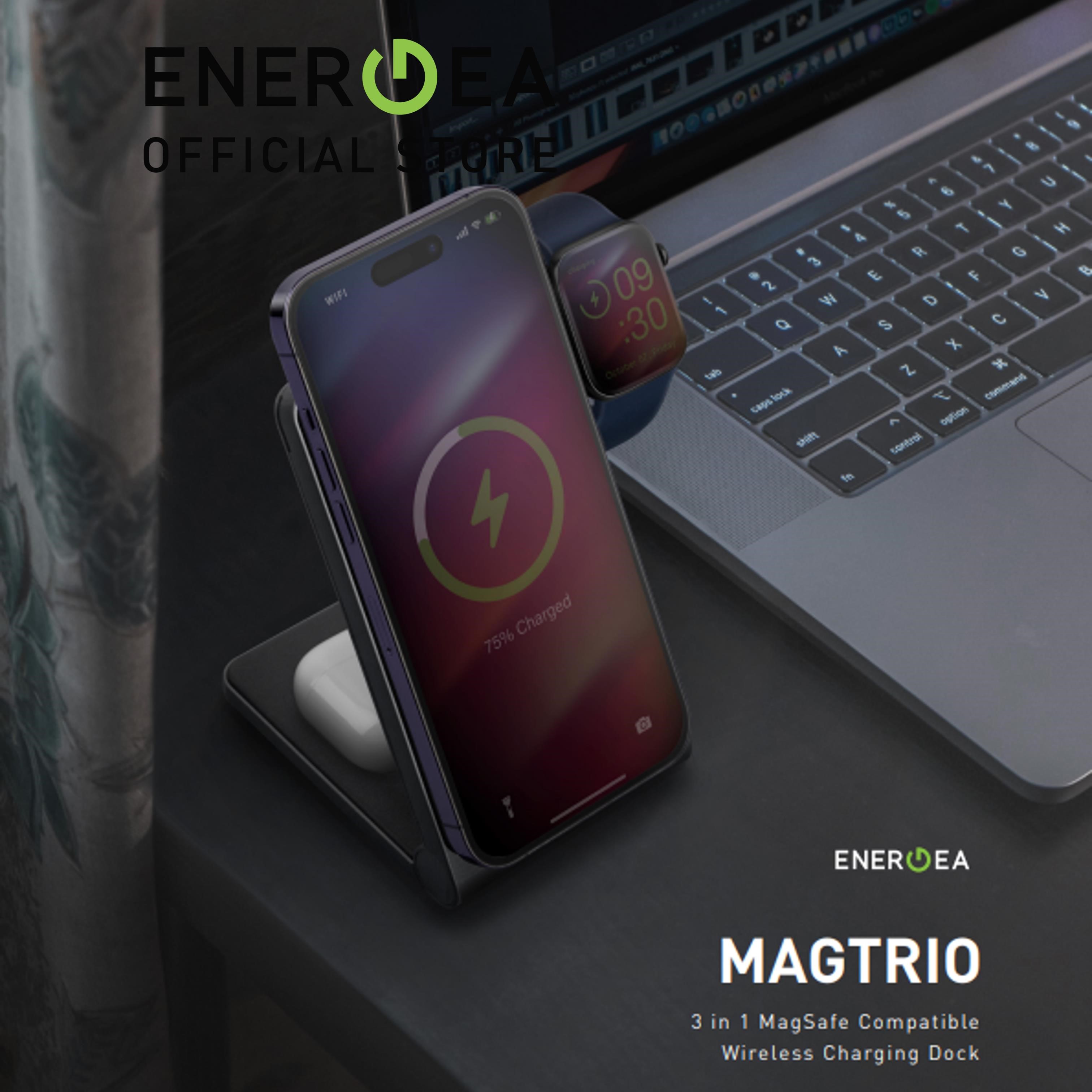 [New Version] ENERGEA MagTrio 3 in 1 Foldable Magnetic Fast Wireless Charger Watch Charger Not Included