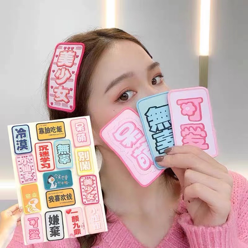 Creative Chinese Bangs Stickers Korean Ins Cute Girl Hair Velcro Sticky Hair Stickers Broken Hair Hair Band