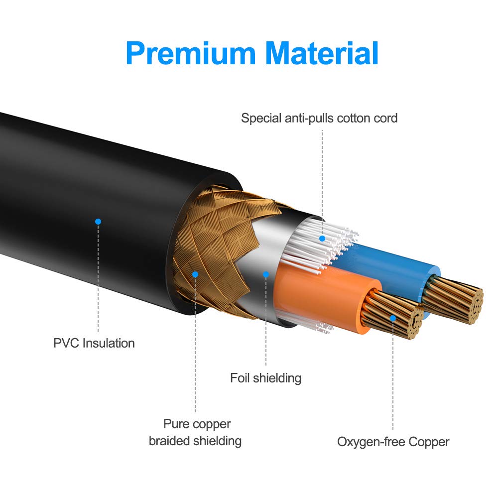 Oxygen free copper shielding & extra foil shielding with 2-conductor, reduces interference and excess noise, which will bring you a more clear, natural and high quality sound.
