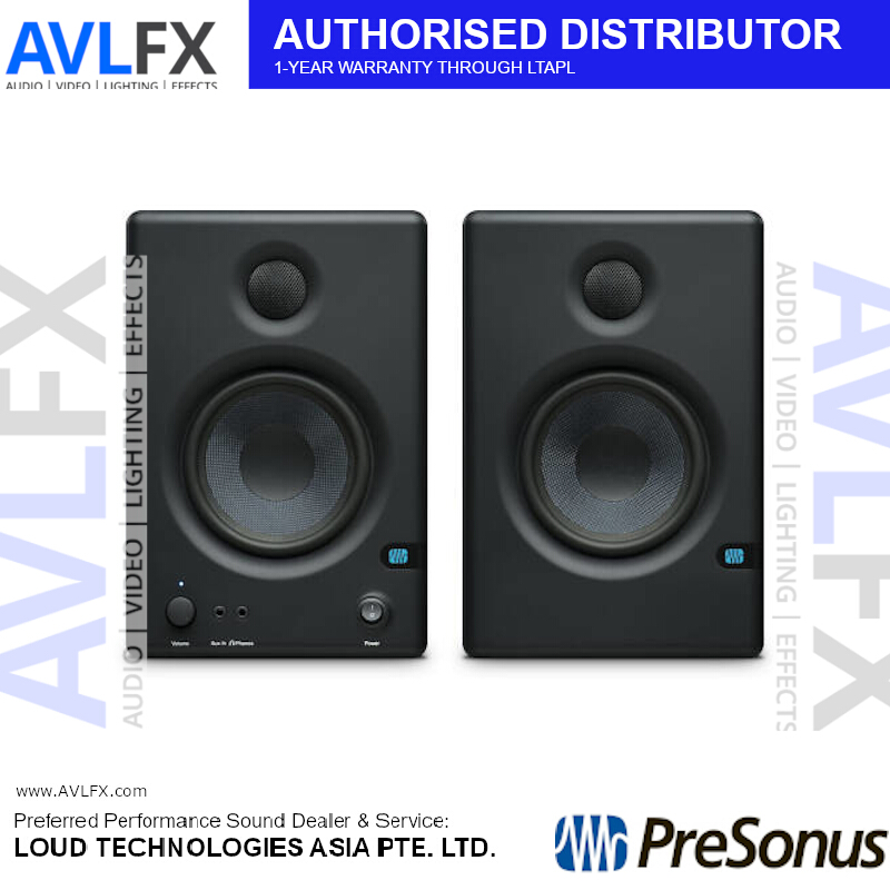 The PreSonus Eris are 2-way 25W nearfield monitors designed to provide a compact sonic reference system for musicians, producers, and audio engineers in home setups, project studios, and commercial facilities. Each monitor produces a frequency response of 80 Hz to 20 kHz.