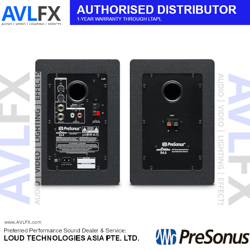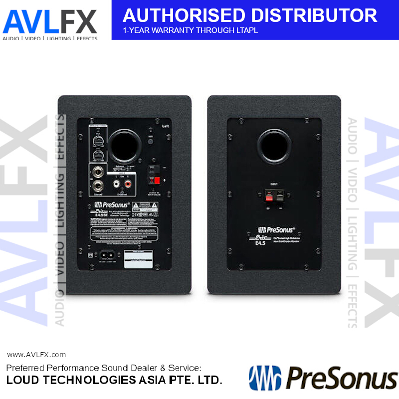 The monitors can handle 100 dB maximum peak SPL. A rear bass-reflex port provides enhanced low-frequency range.