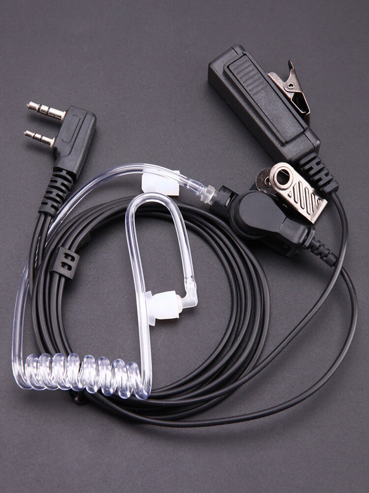 Two-pin standard diameter: Ear 3.5mm stereo (top pin). Mic 2.5mm stereo (bottom pin).