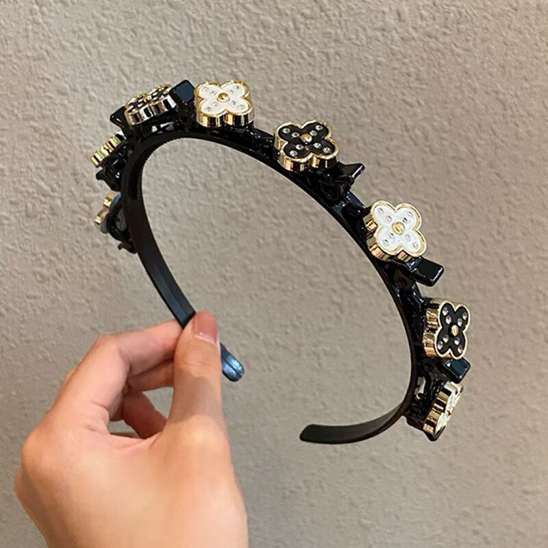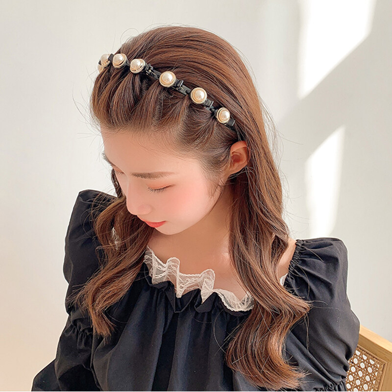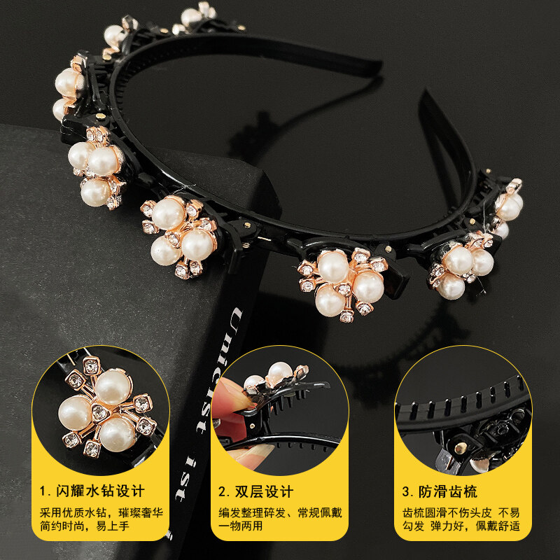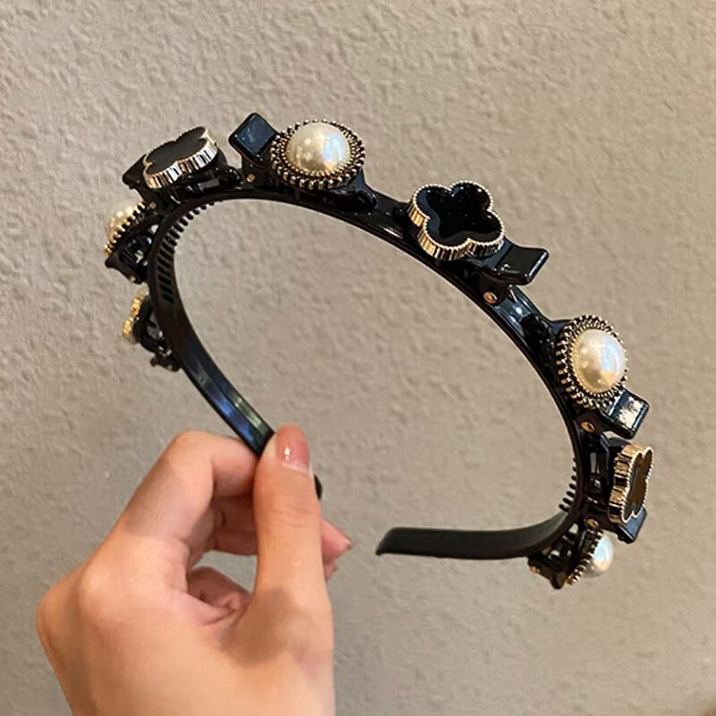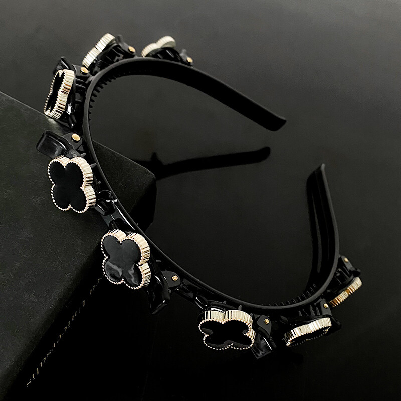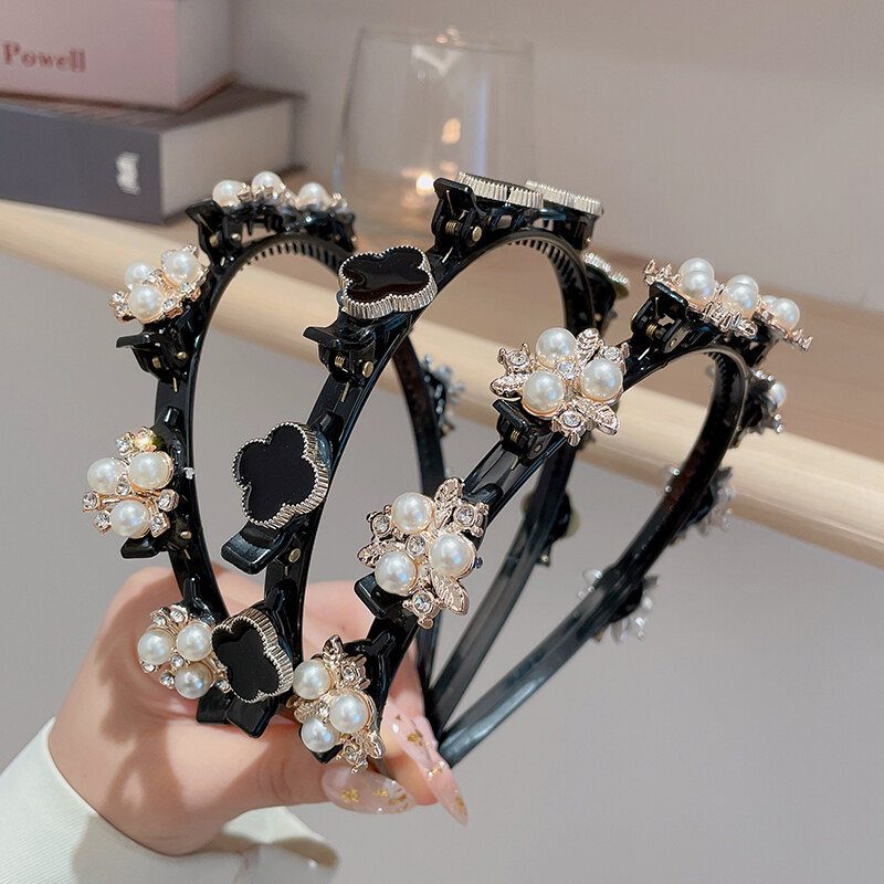 Four Leaf Clover Non-Slip Headband Pearl Women Hair Hoop Double Bangs Hairstyle Korean Style Elegant Temperament Headwear