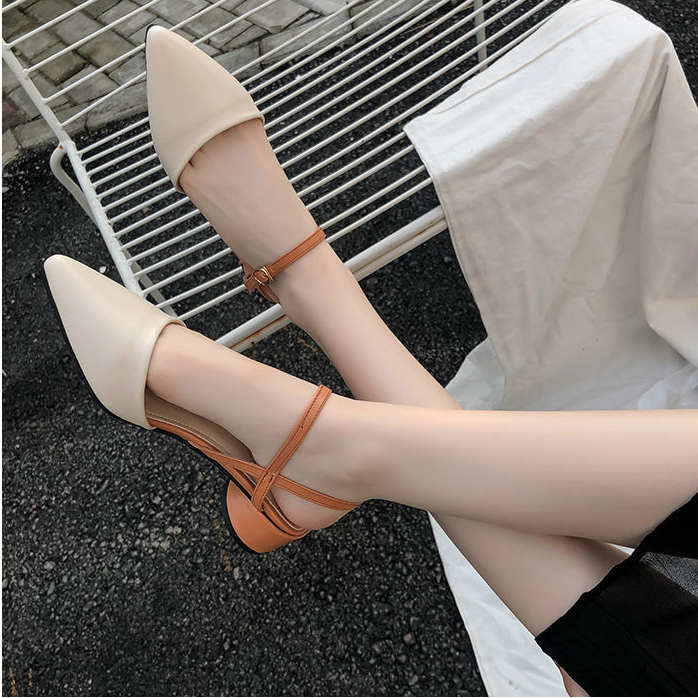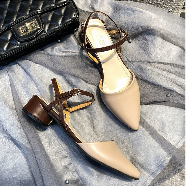 Pointed Slotted Buckle Sandals with Thick Heels