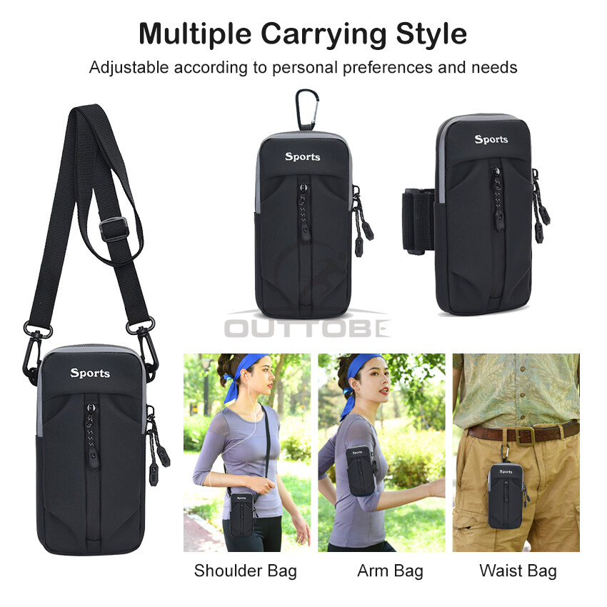 Outtobe Sports Armbands Fitness Reflective Arm Bag Pouch Sport Bag Running Arm Bag Waterproof Mobile Phone Bag Waist Bag Shoulder Bag Outdoor Sport Wrist Exercise Workout Running Crossbody Pouch Bag