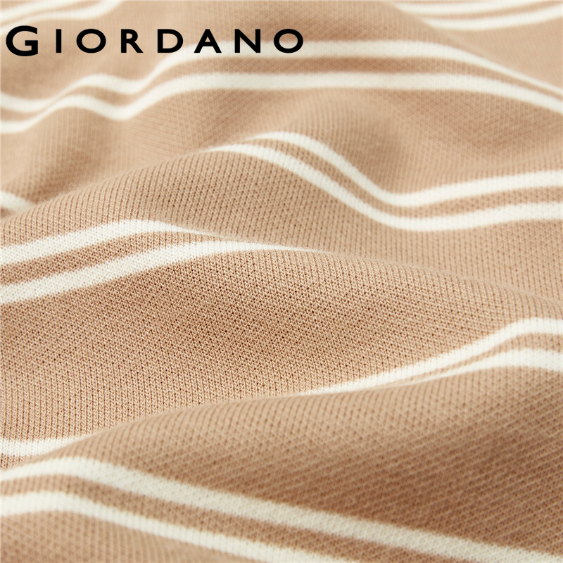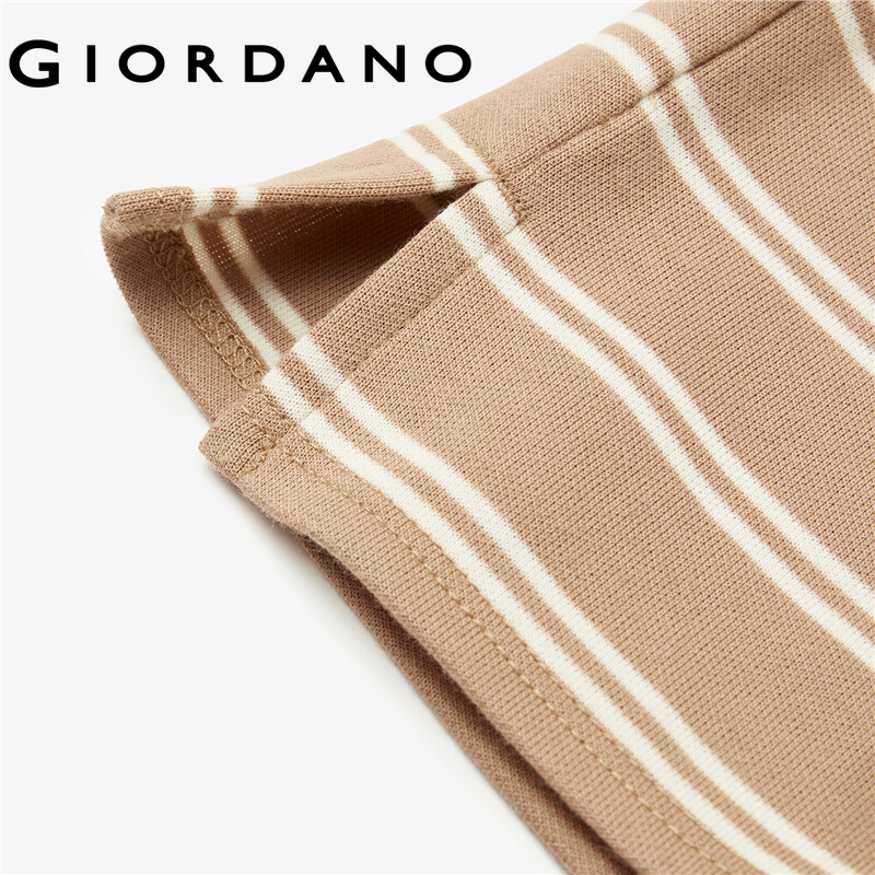 GIORDANO Women T-Shirts V-Neck Stringy Selvedge Design Casual T-Shirts Short Sleeve Button Closure Relaxed T-Shirts 13322208