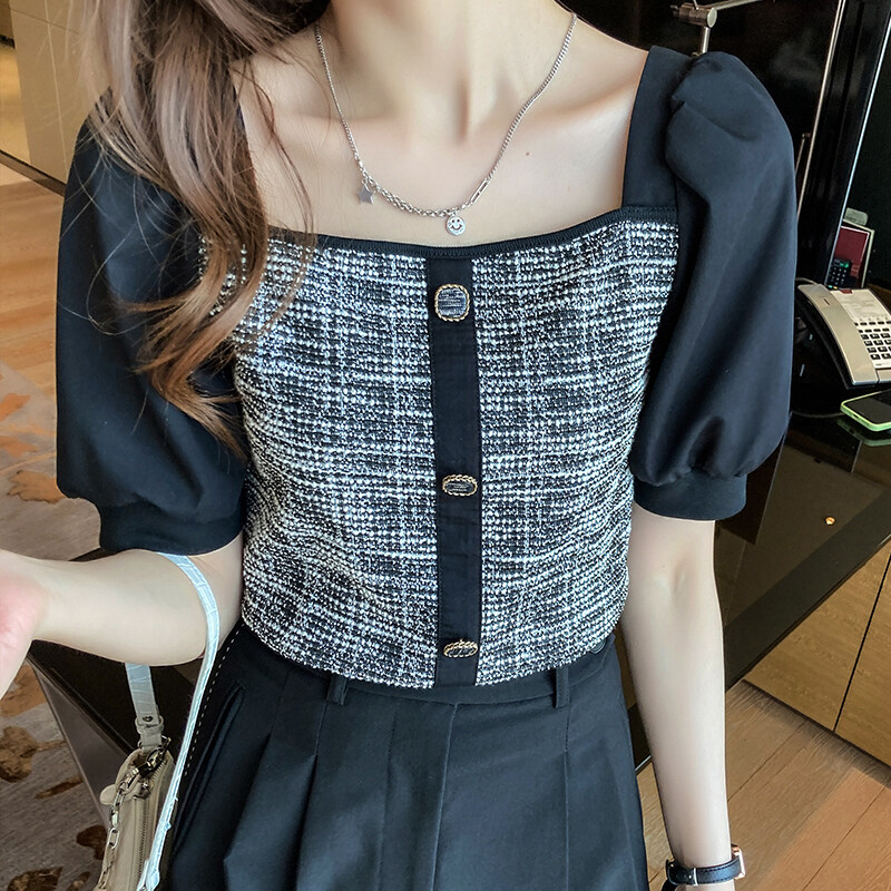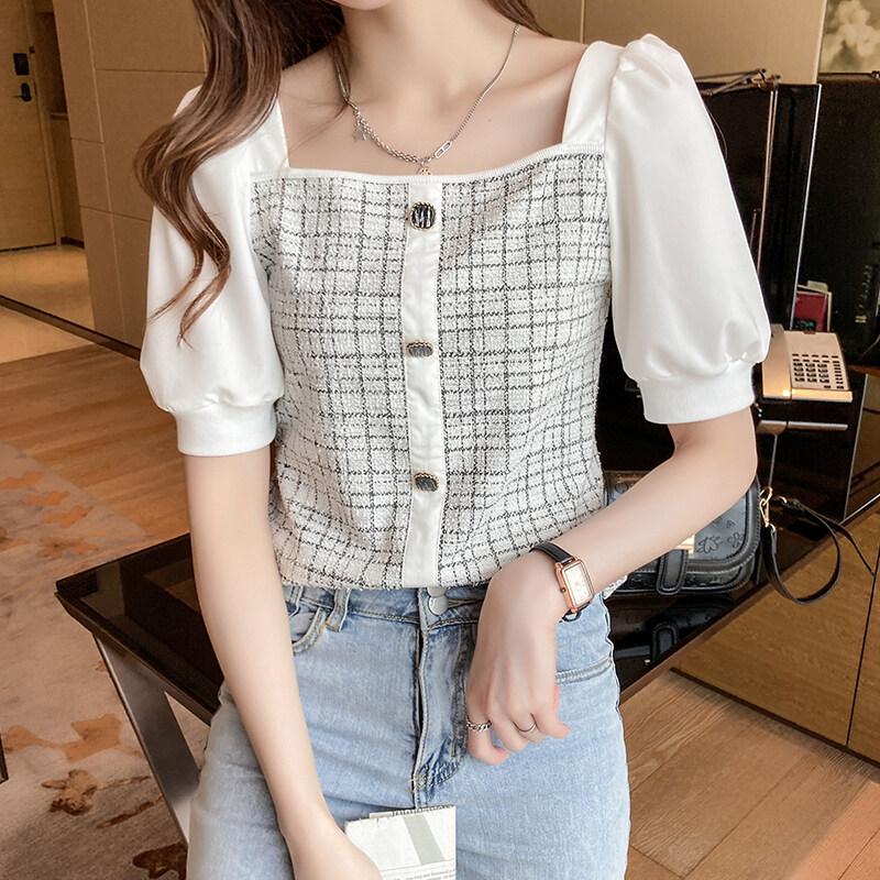 YIGE summer Korean women's plaid square collar blouse plus size elegant temperament