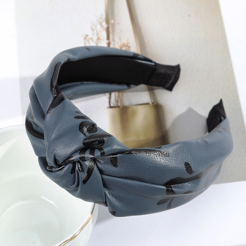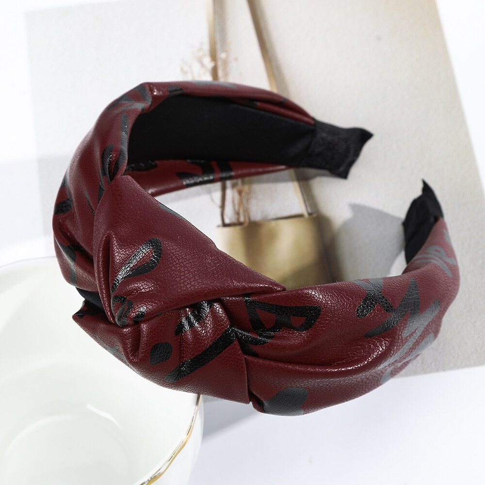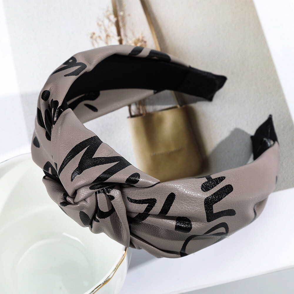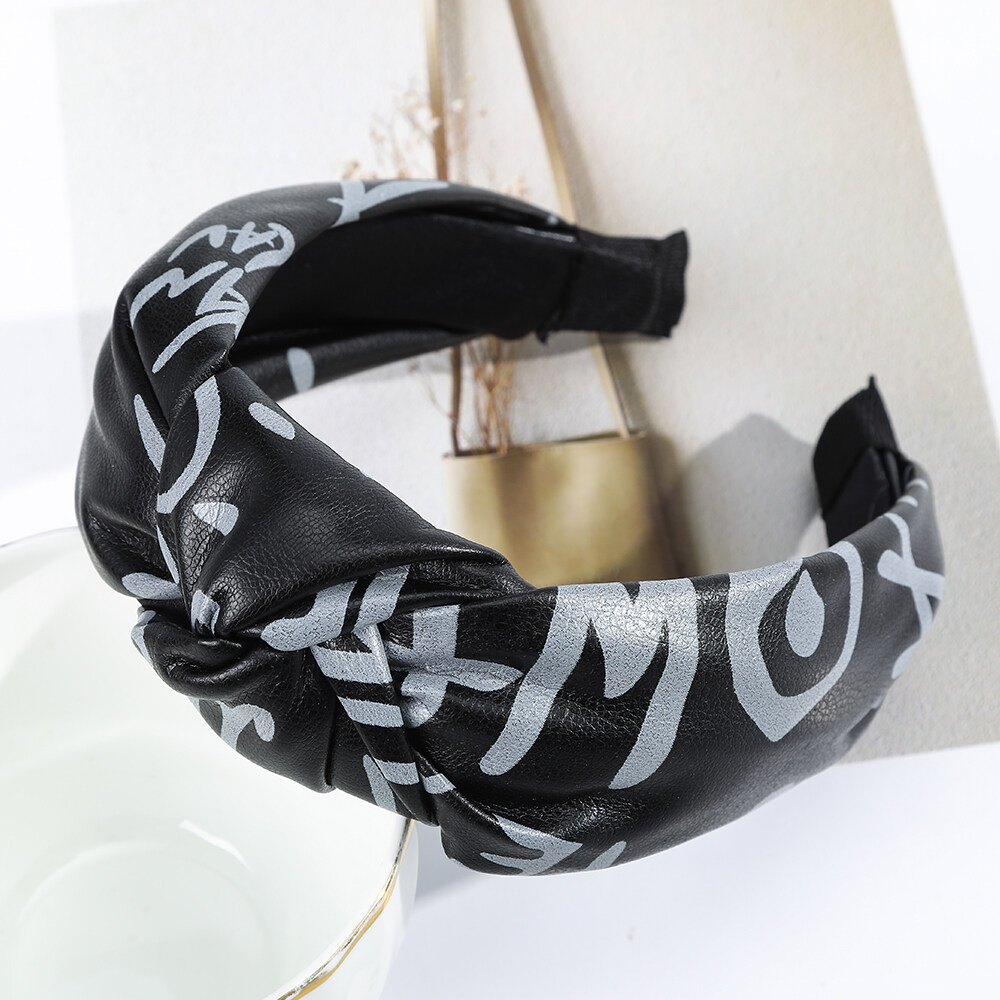 Korean Fashion Headband Women Leather Hair Band Letter Graffiti Wide-brimmed Hair Accessories
