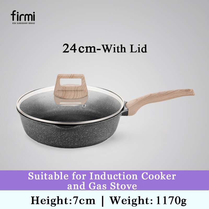 EOX Deep Frying Pan cookware Wok Non-Stick pan Skillet 24/28cm with lid Maifan Stone Suitable All Stove
