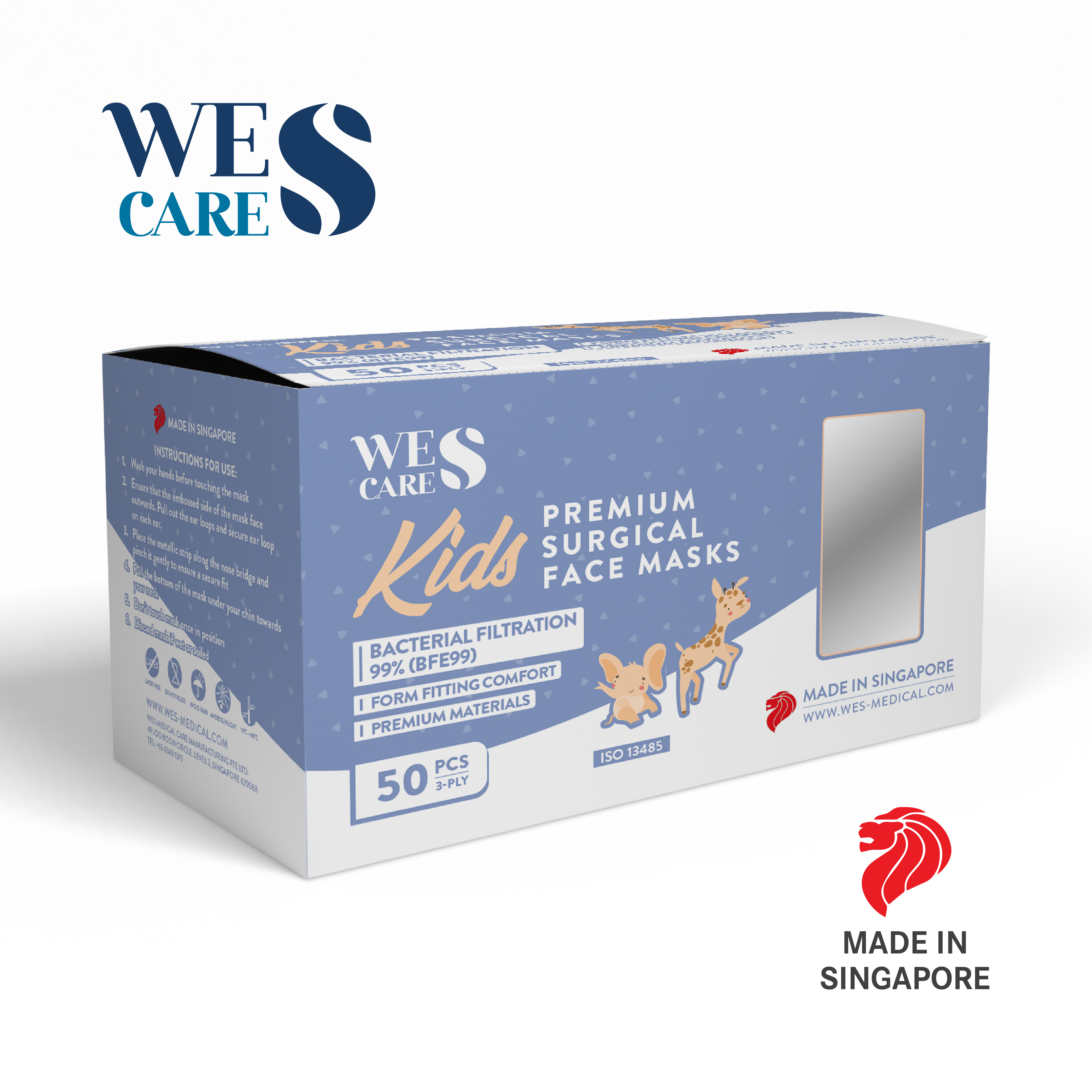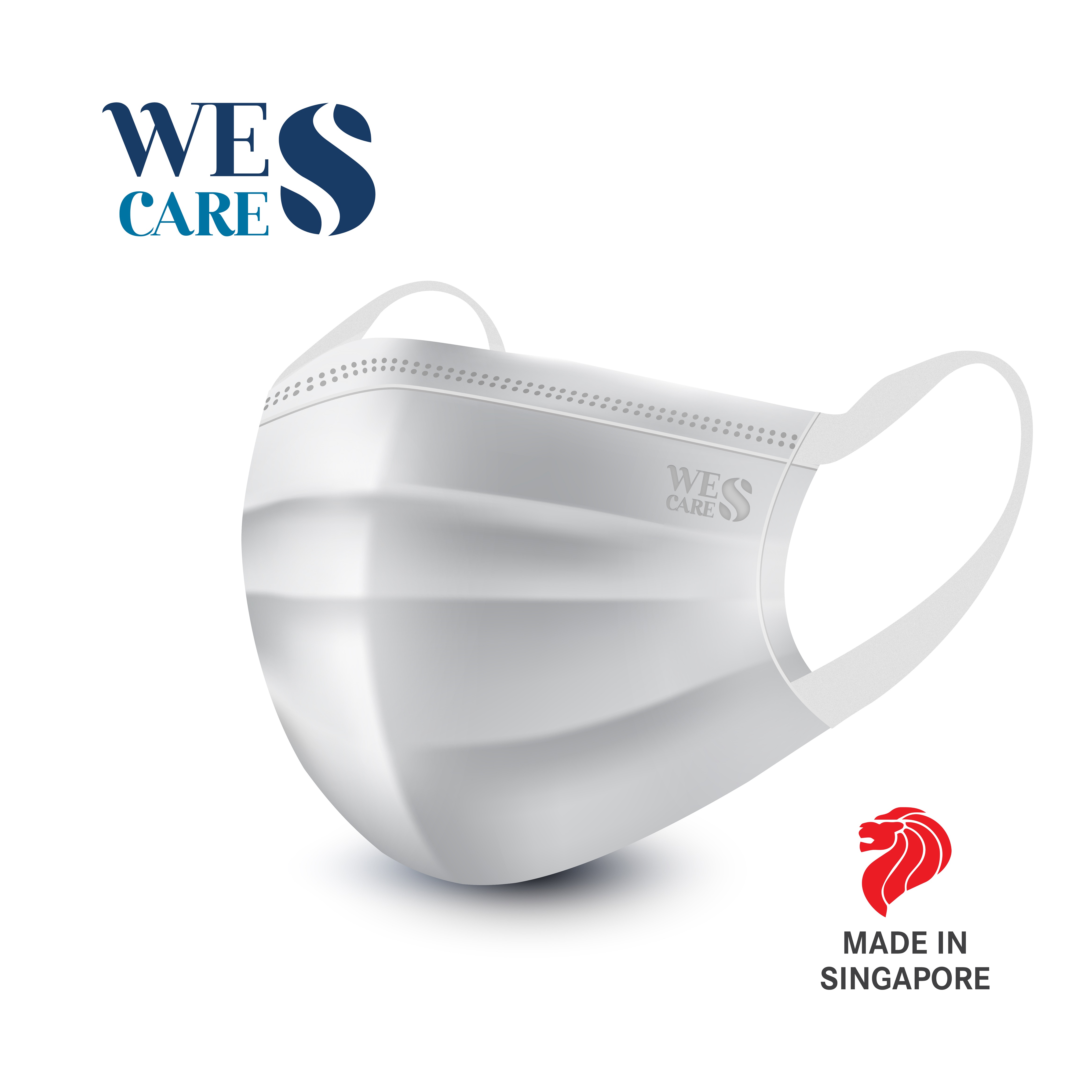 [100 Pieces] Wes Care 3ply Premium Face Mask Lily WhiteBFE 99.9% BSI certified for ISO13485 Made in Singapore in a clean and controlled environment. Masks 99mm +-3 mm wide. 2 Box of 50 pcs.