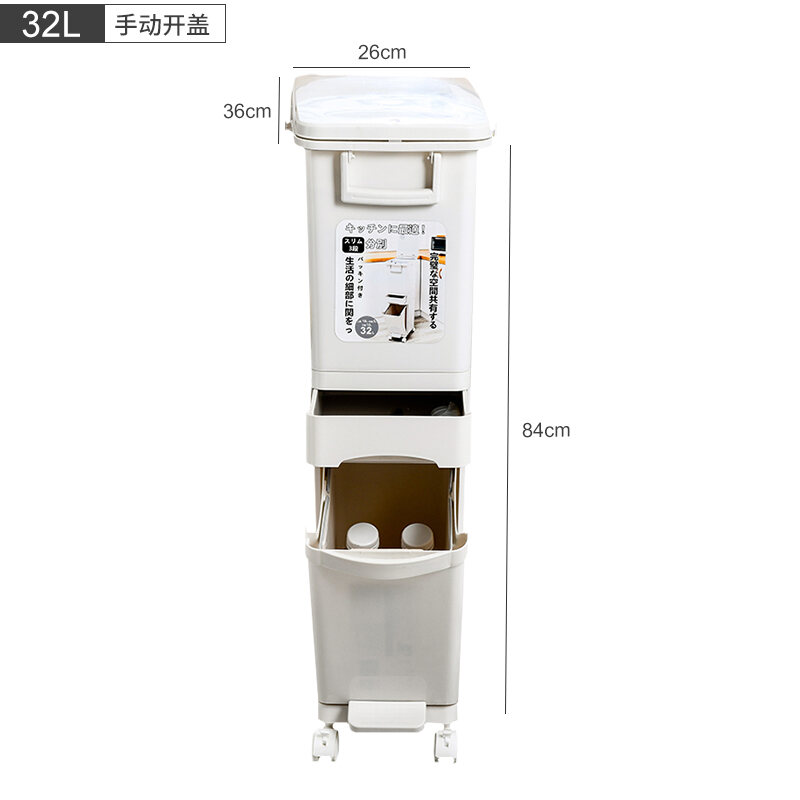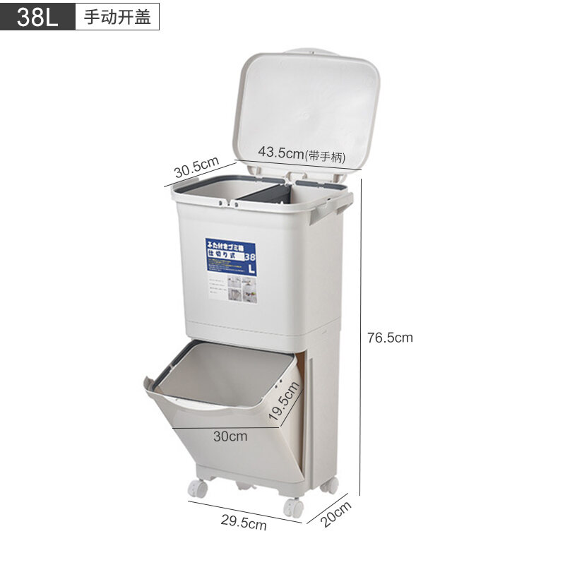 Garbage Classification Household Double-Layer Trash Can Dry Wet Separation Dustbin Japanese-Style Large Kitchen Trash Can with Lid