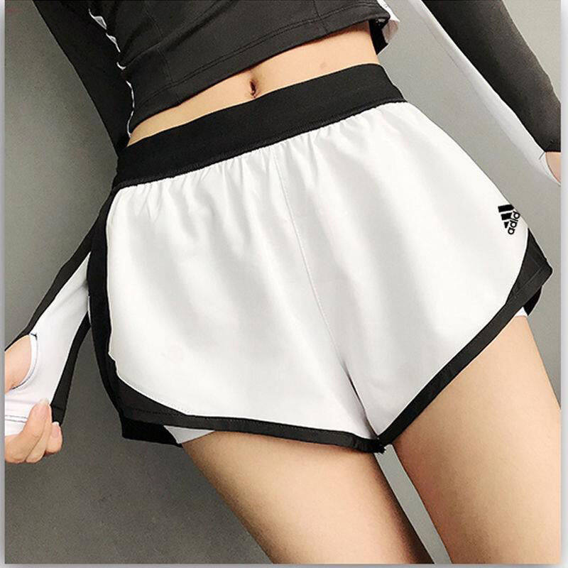 Summer Fashion Women Fitness Leggings Ladies Shorts Double-Layer Quick-Drying Gym Running Yoga Sports Shorts Casual Solid Color Short Pants Beach Skirt