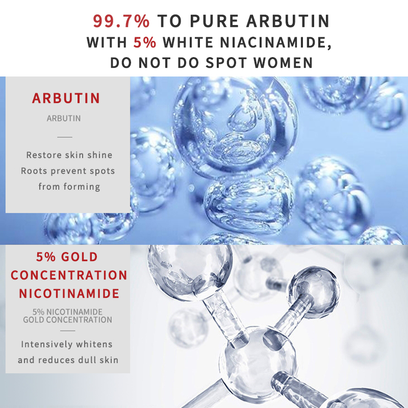 • Product efficacy: add nicotinamide, 377 *, vitamin C glycoside * whitening and brightening ingredients, can improve the dark yellow skin, dull, fade spots, make the skin more white and clear. Delicate and smooth texture, combined with hydrolyzed yeast protein, Haematococcus pluvialis extract, vitamin E and other essential ingredients, take care of tender skin, improve fine lines and fine lines, enhance skin compactness, make skin smooth and elastic.