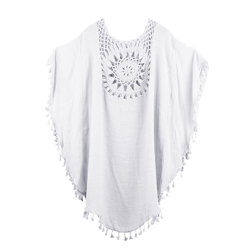 Lovely Beach Cover Up for Women Fashion Sexy Women Hollow Big V-Neck Short Sleeves Irregular Fringe Bikini Beach Outfits