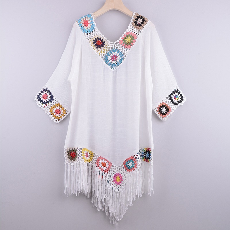 Features: V-neck, see-through, fringe, solid color, loose, crochet eyelet, hollow, stylish and unique, can help improve women's charm.