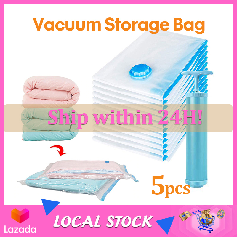 【SG Ship within 24H】(5Pcs) Compression Storage Bag Reusable Waterproof Dustproof Moisture-Proof Foldable Vacuum Bag Save Space Travel Bag Household Clothes Quilt Compressed Organizer