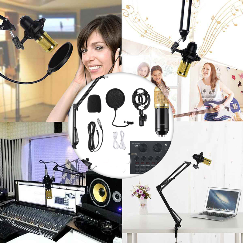 V8 Sound Card With BM800 Microphone Live Broadcast Equipment Full Set Of Mobile Phone Mic Kit Sing Vocal Audio