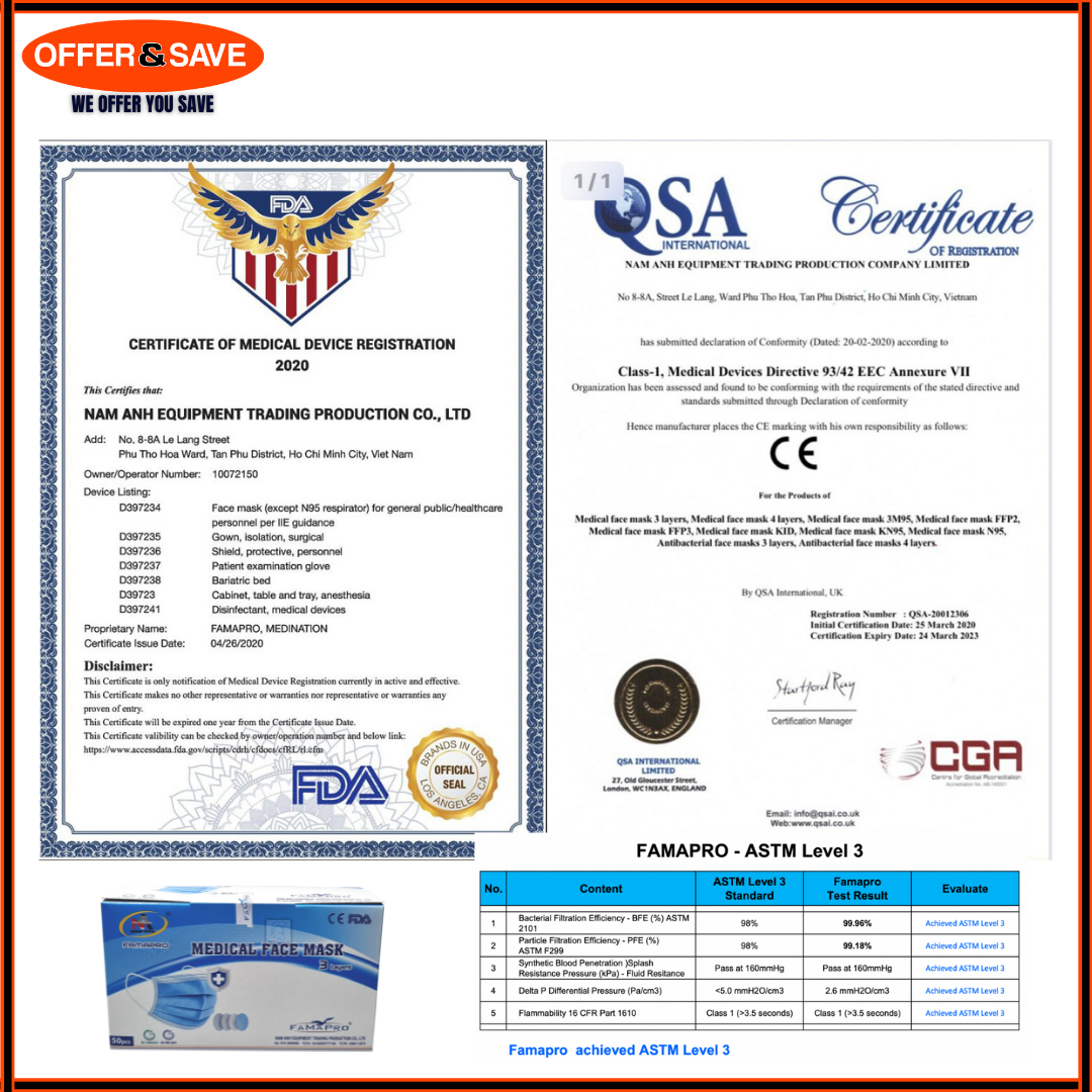 [LOCAL SELLER] 50 PCS 3 PLY BFE 95% 99% Medical Surgical Grade Disposable Face Mask HSA Import Approved