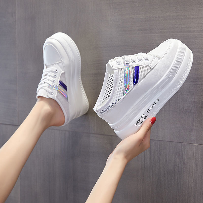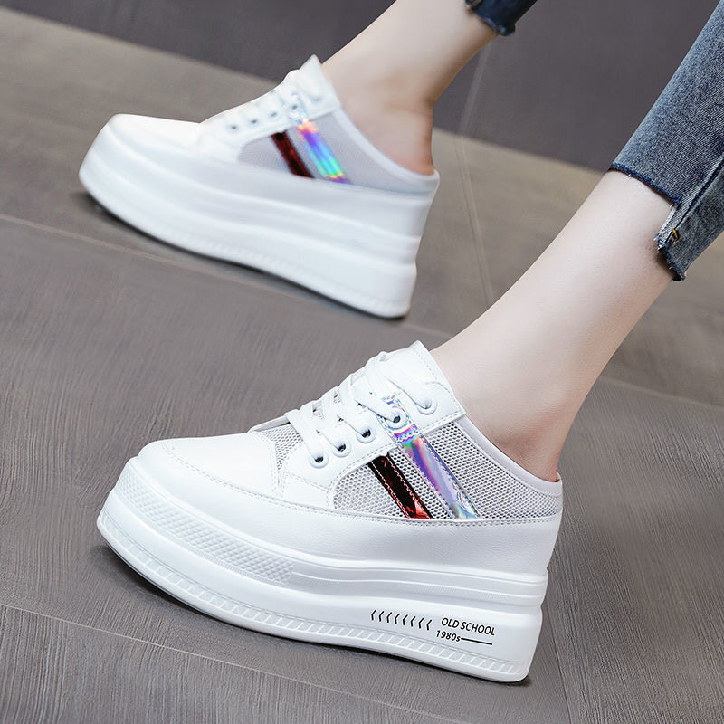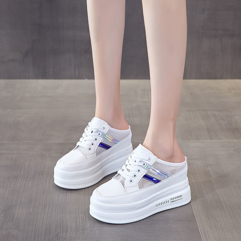 Women's shoes 2021 new sneakers mesh platform increased Baotou slippers women casual white shoes