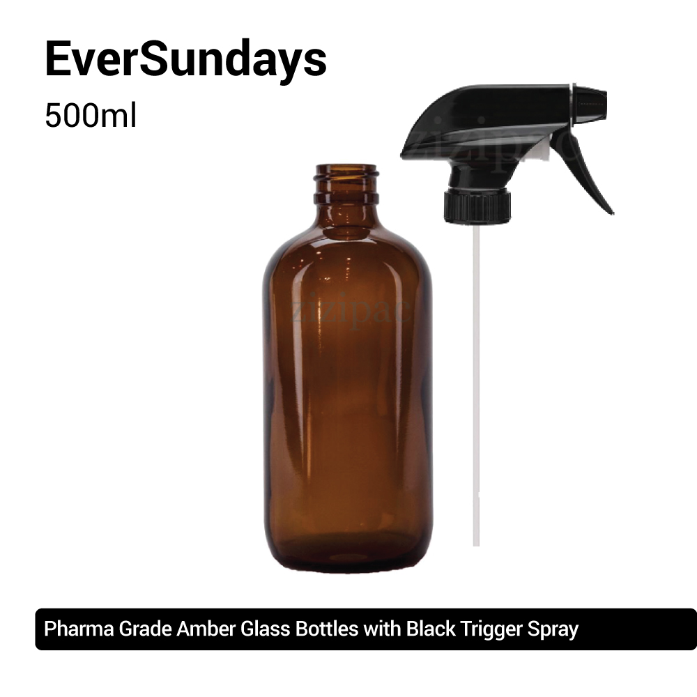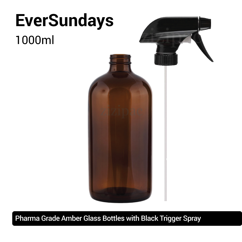 ( 3pcs/5pcs/10pcs ) EverSundays Amber Glass Bottles + Black Trigger Spray - 250ml, 500ml, 1000ml
