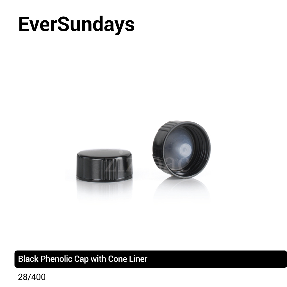 Each glass bottle comes paired with a black phenolic cap, with PE cone liner.