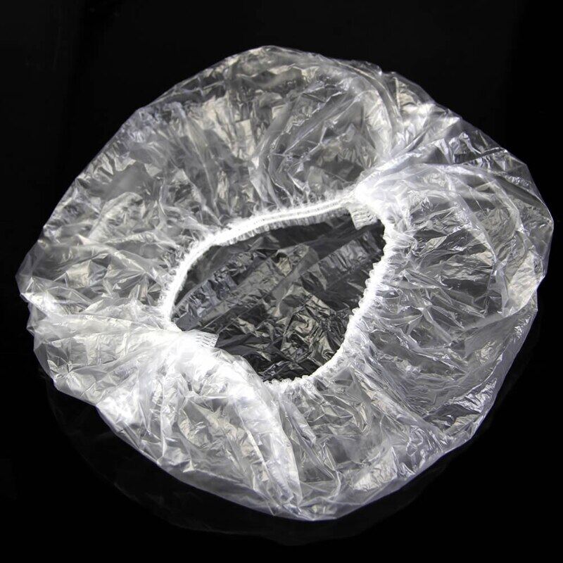 OSHIONER 100 Pieces of Disposable Thickening Hotel Family Shower Bath Transparent Hair Elastic Cap Hat Plastic Wrap Set Bowl Set Dish Cover