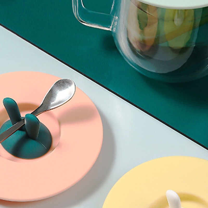 Mododo Silicone Cup Lid Heat Resistant Sealed Cover Bunny Ear Shape Leak-proof Reusable for Kids