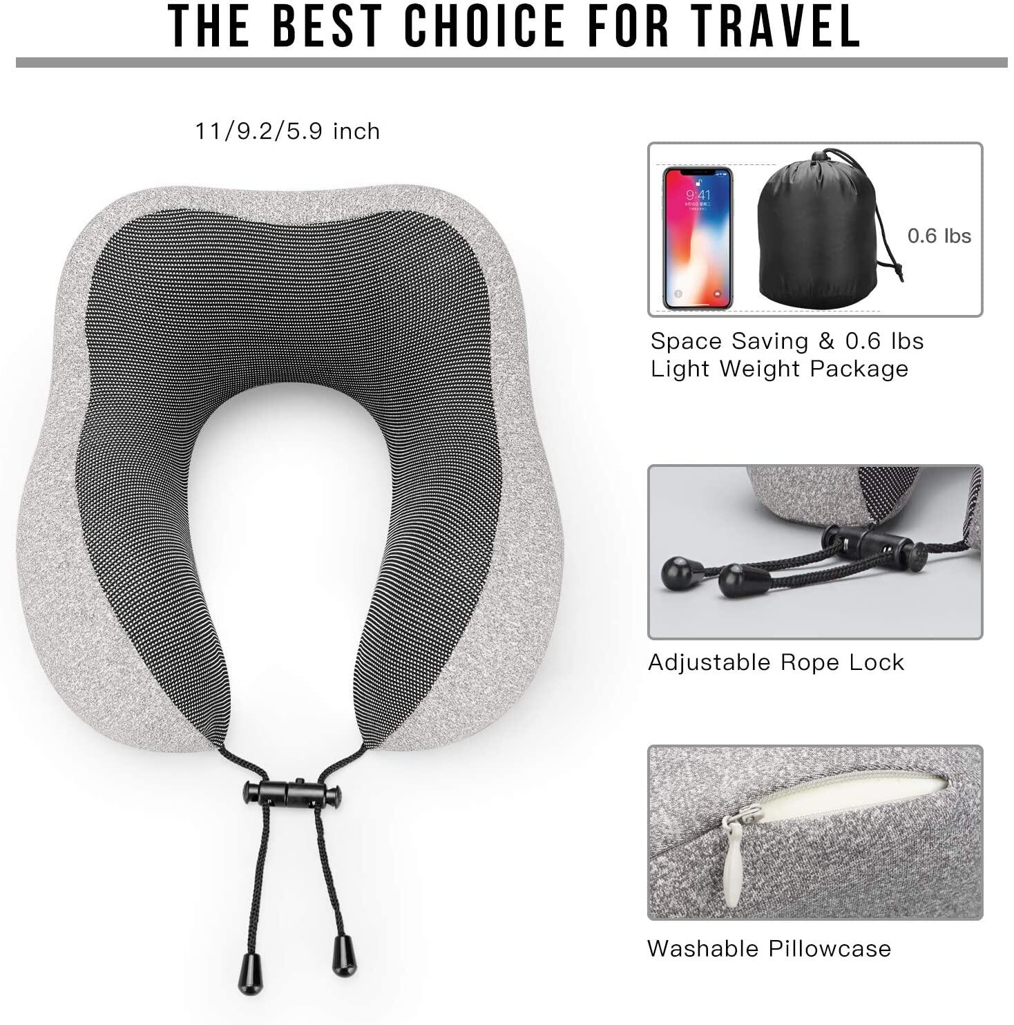 MLVOC travel pillow 100% pure memory foam neck pillow, comfortable breathable pillowcase, machine washable, airplane travel kit, eye mask with 3D contour, earplugs and luxury bag, standard (black)