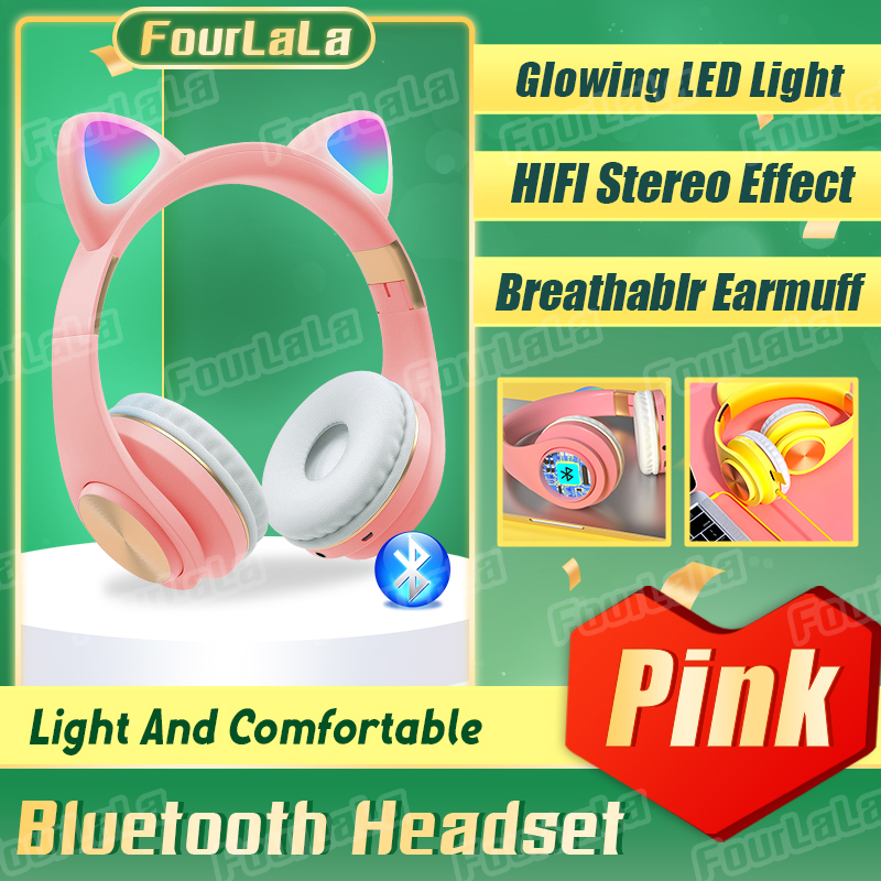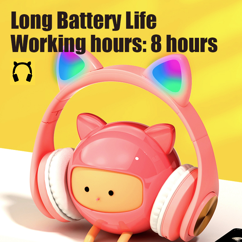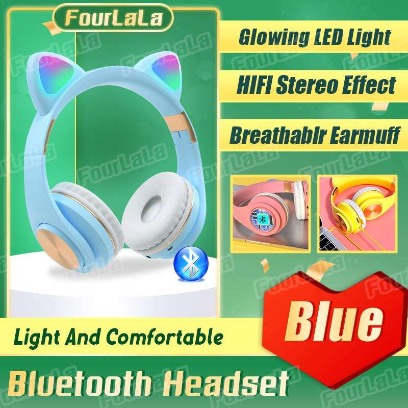 New head-mounted cat ear colorful LED flash cat paw gift box head-mounted Bluetooth headset can be stretched