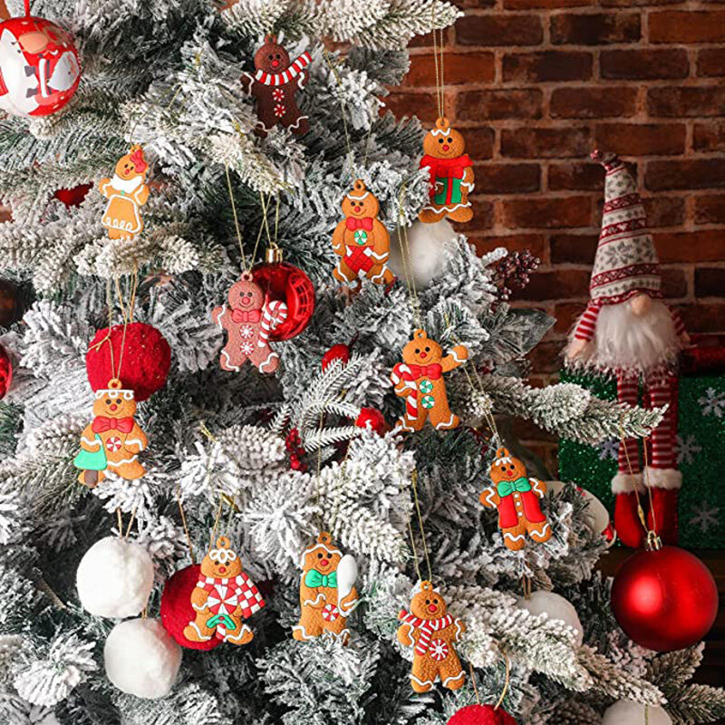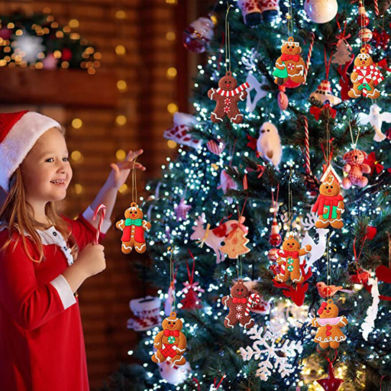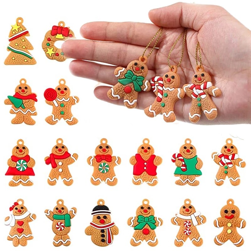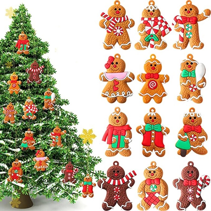 1 Set Christmas Cute Gingerbread Man Pendant/ Charm Christmas Ornaments/ Deer Snowman Xmas Tree Hanging Decoration