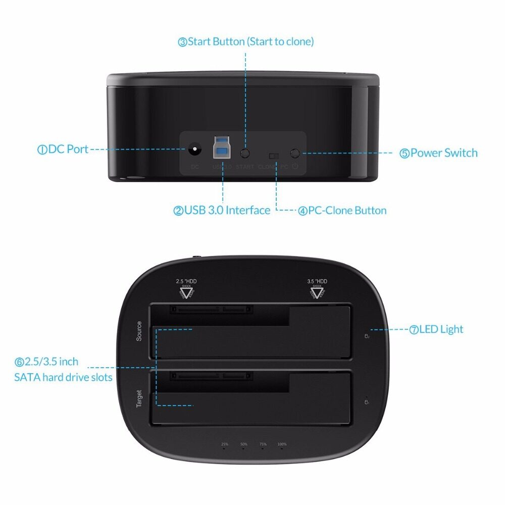 ORICO Clone 2.5 3.5 inch Hard Drive Docking Station 2 Bay USB3.0 to SATA HDD Case Support UASP 16TB HDD Enclosure Black(6629US3-C-V1)