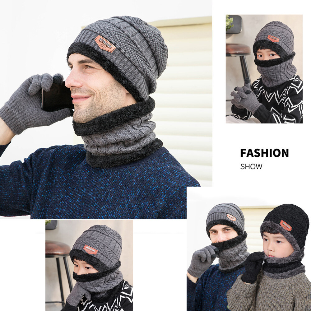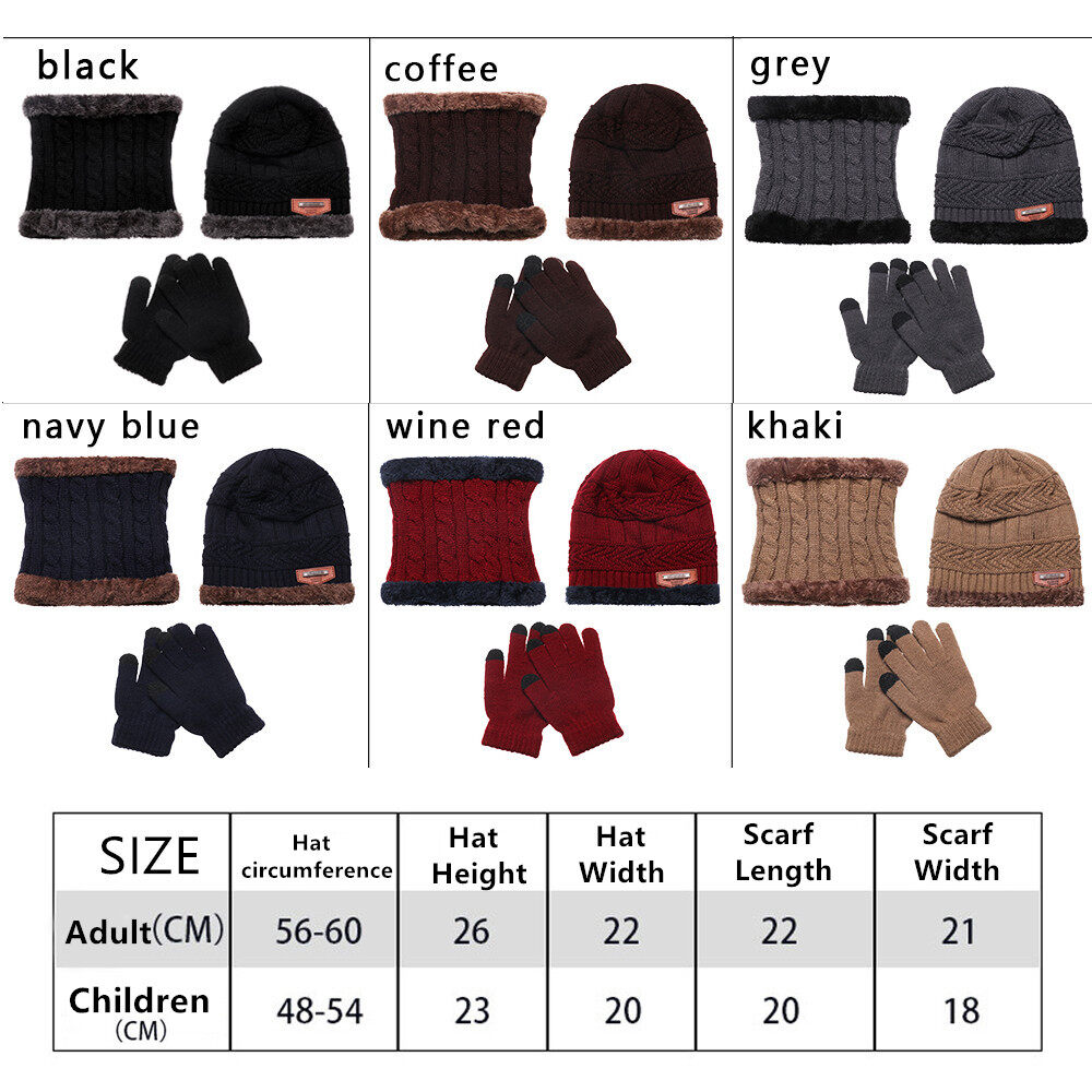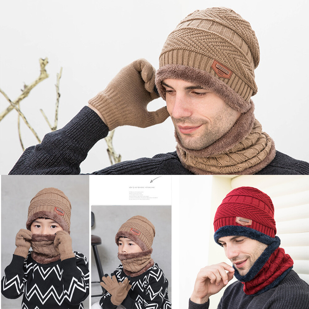 Winter Warmer 3 In 1 Mens Girl Beanie Hat And Neck Scarf Knitted Gloves Set
