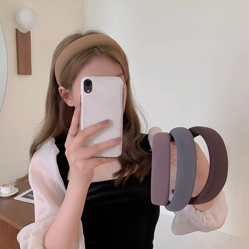 PU Wide Side Thicken Increased Headbands for Women Morandi Color Plain Simple Hairbands Korean Style Girls Elegant Hair Hoops