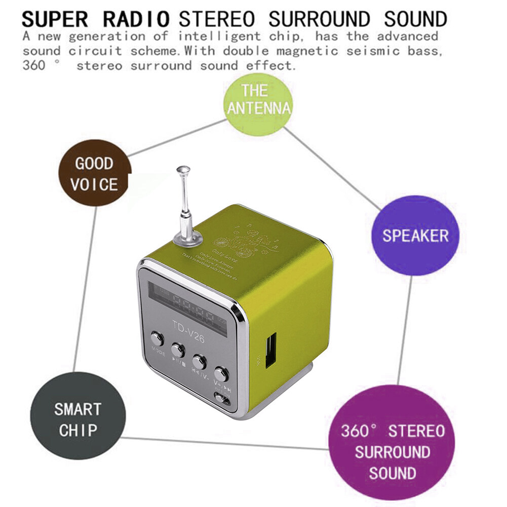 TD-V26 Mini Digital FM Radio Speaker Portable FM Radio Receiver with LED Display Screen Loudspeaker Support TF Card