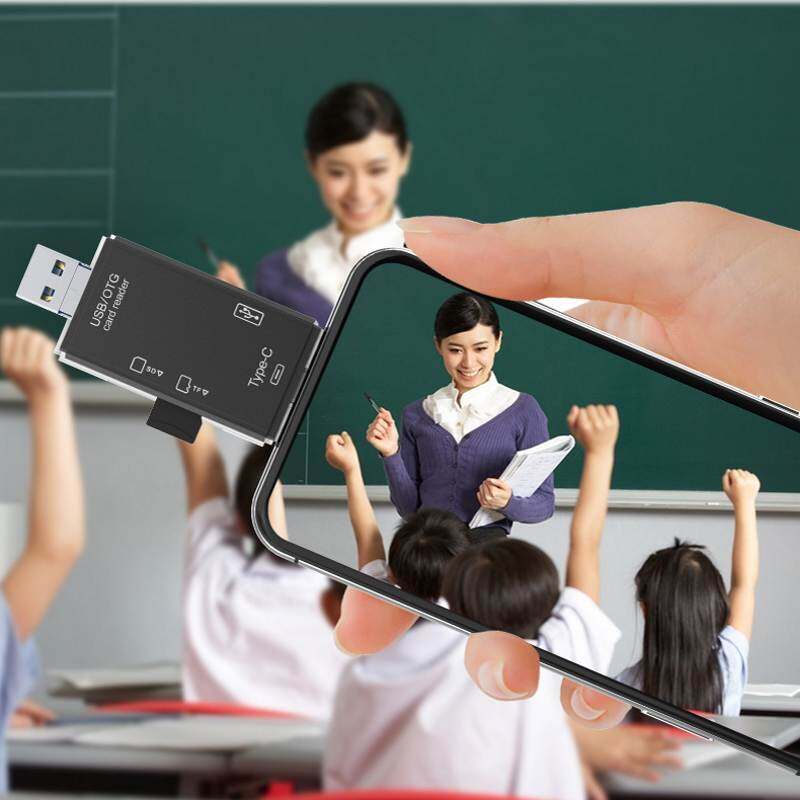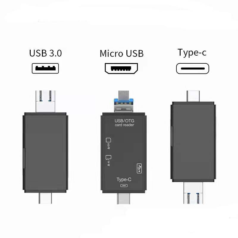 Specification: Material: ABS+environmental protection plastic Size: 7.5CM*2.7CM*1cm Interface: USB 2.0 Support memory card: SD, U disk, TF Interface type: USB+TYPE-C+MICRO Colour: Black quantity: 1