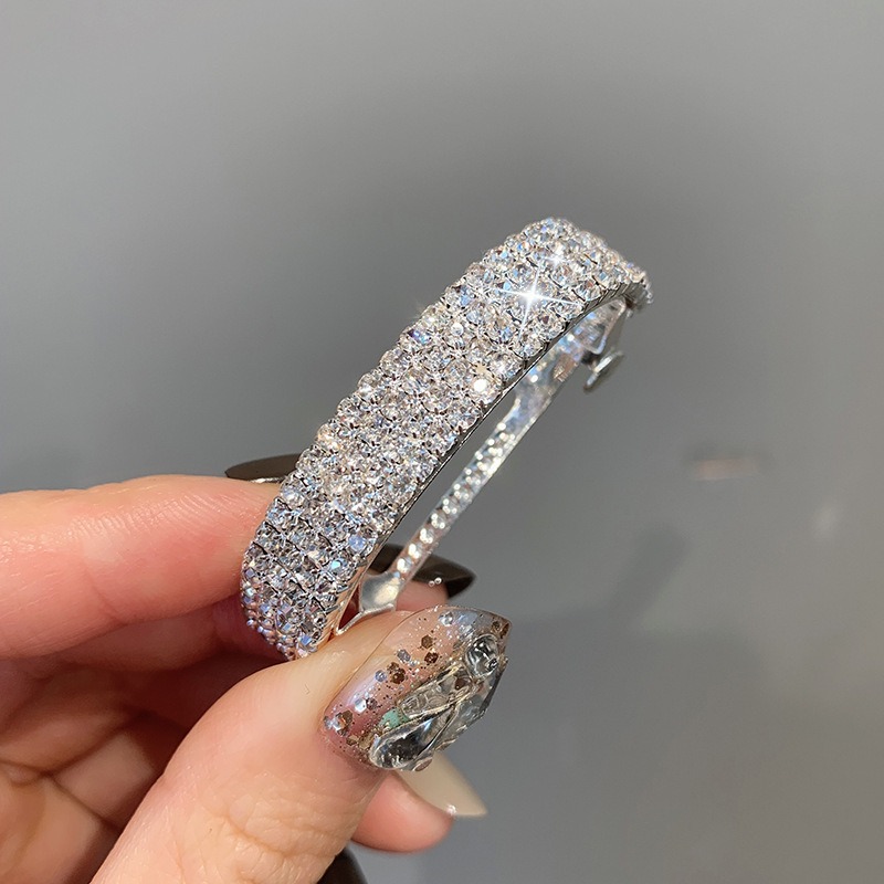 [SG | Shining & Pretty] Metal Hair Clip Ponytail Holder, Mounted with Crystals, Adjustable Pad, in Silver and Gold Colours