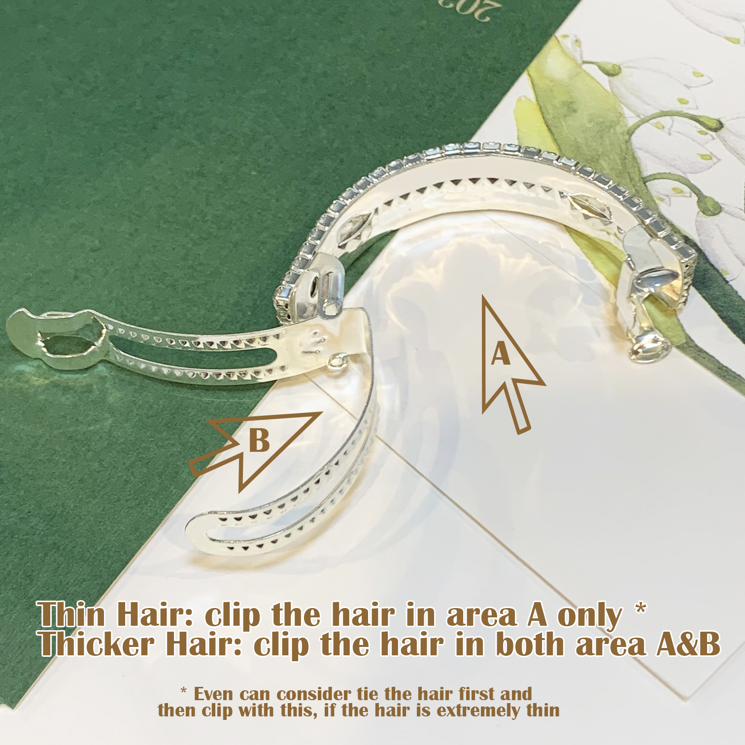• Adjustable Pad: thin hair clip with A area, thick hair clip with A&B area. Extremely thick hair do half up-do clip.