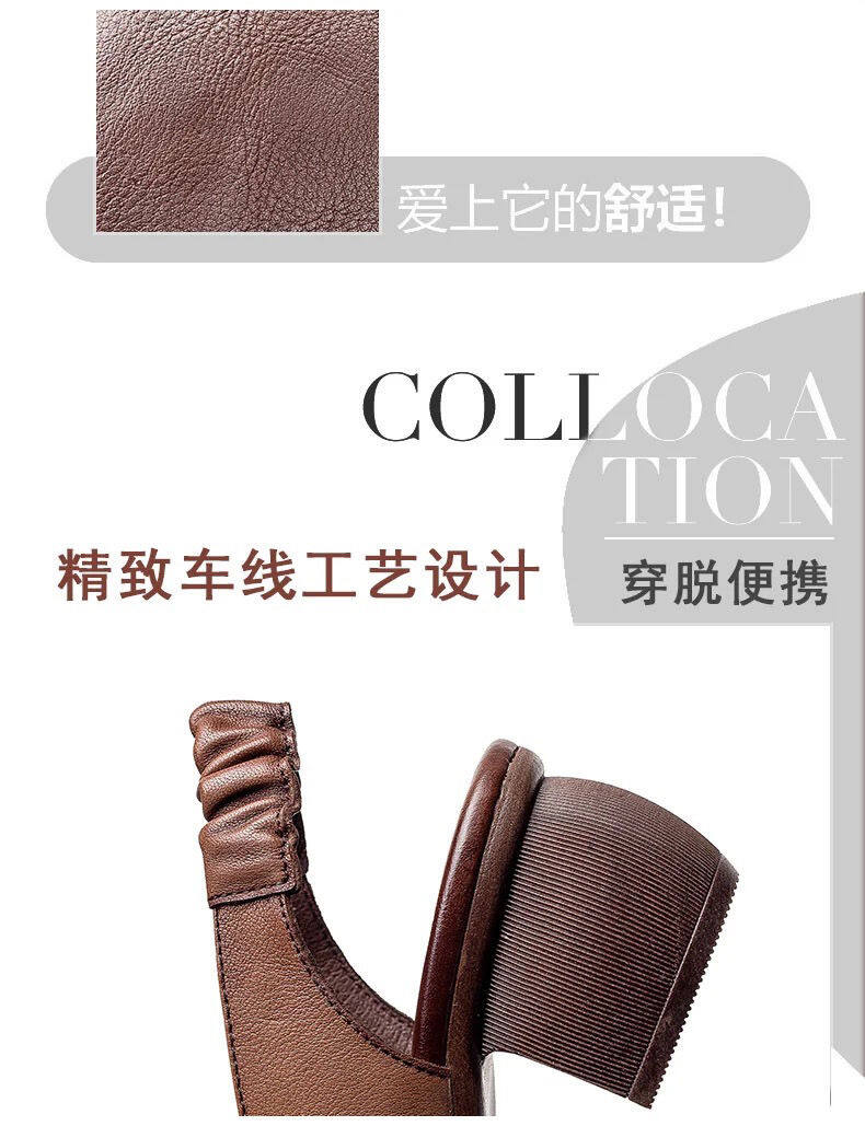 Women's genuine leather wedge sandals 2022 summer new fashion all-match comfortable casual refreshing thick bottom wedge heel sandals 9CM