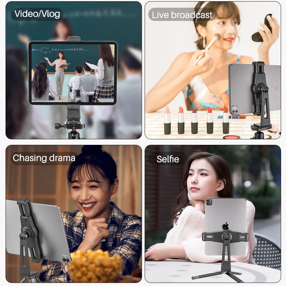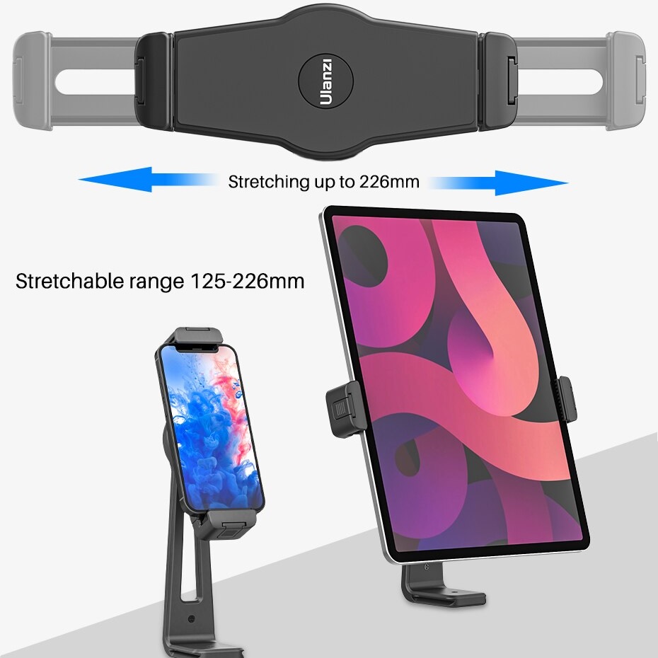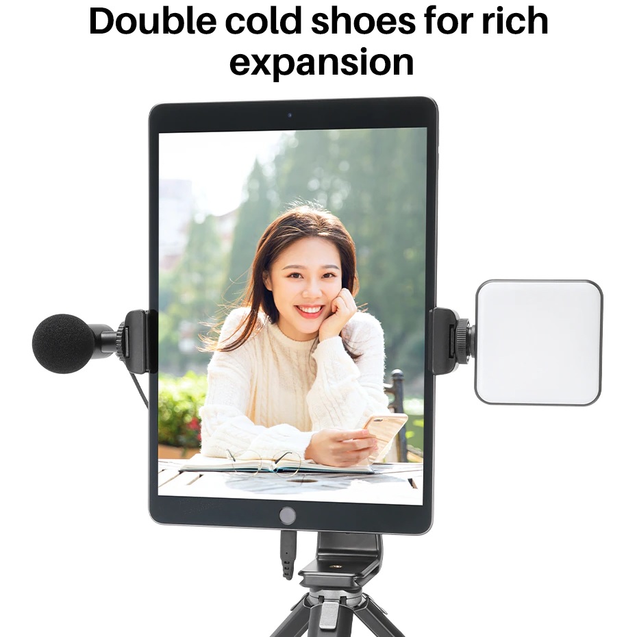 ULANZI ST-20 Plastic Tablet Holder iPad Clamp Clip Dual Cold Shoe Vlog Mount Bracket 360 Vertical Shooting