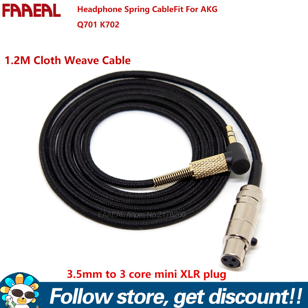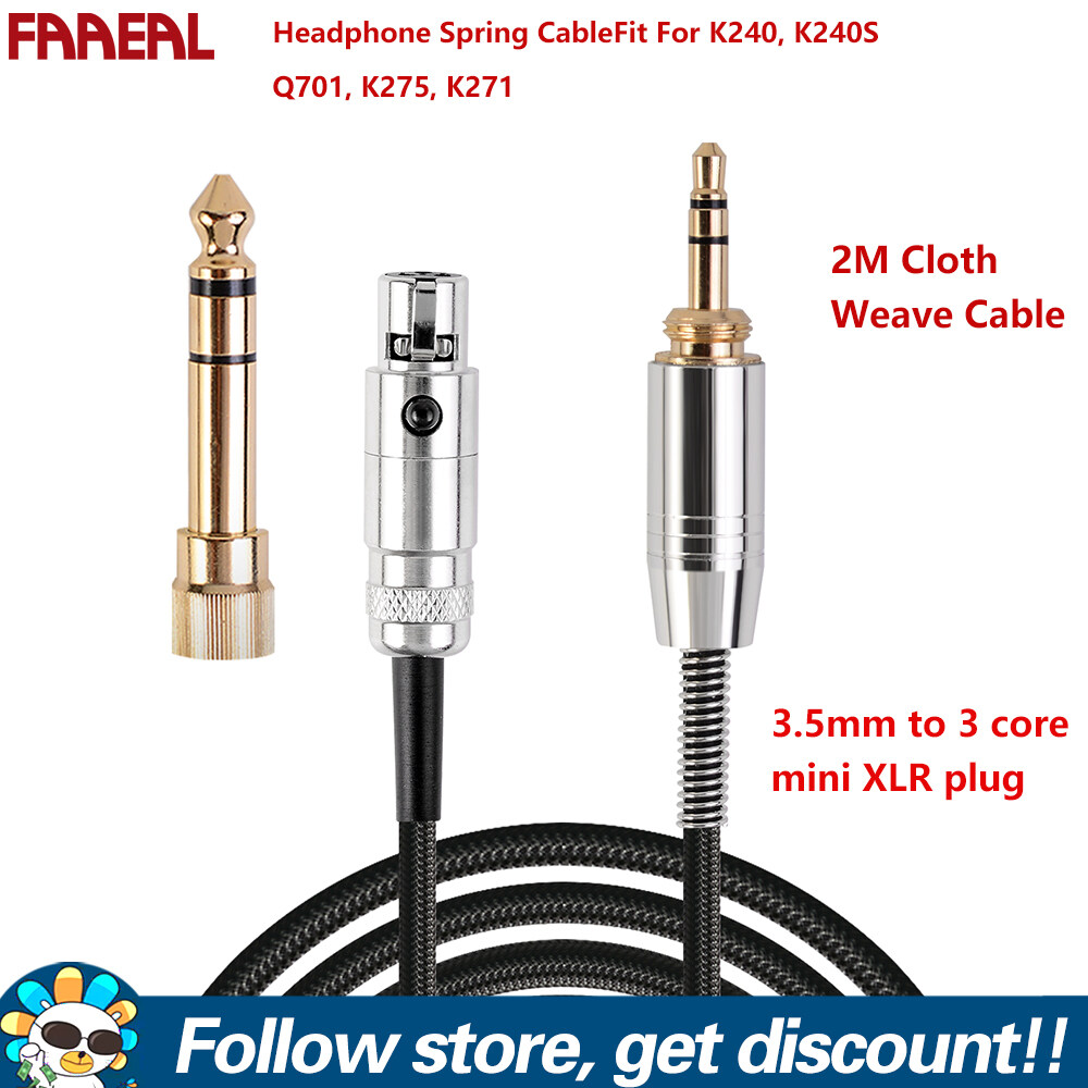 FAAEAL Headphone Replacement Spring Cable OFC 3 Core Mini Headset Upgrade Replacement Line Detachable Upgrade Earphones Wire Fit For AKG Q701 K702 K267 K712 K141 K171 K181 K240 K271MKII K271 Headphones