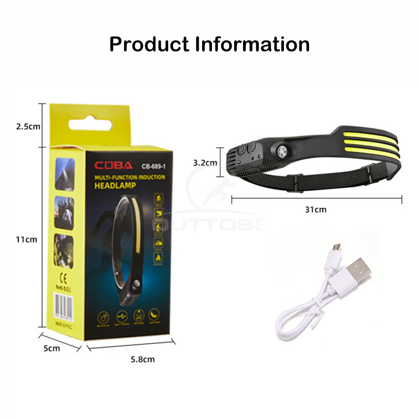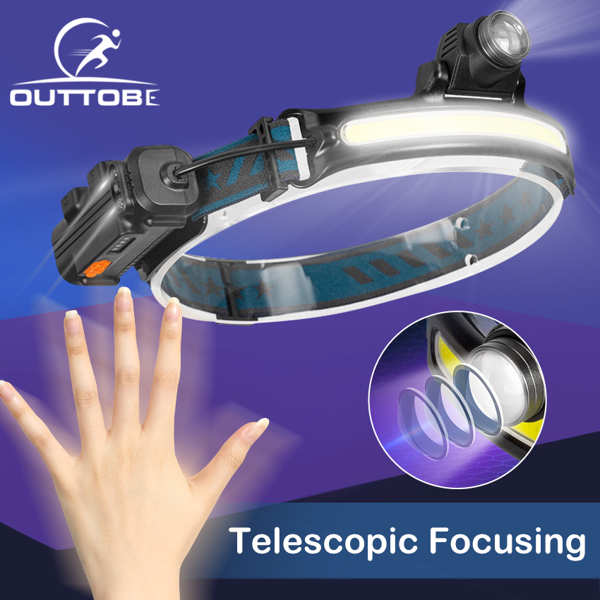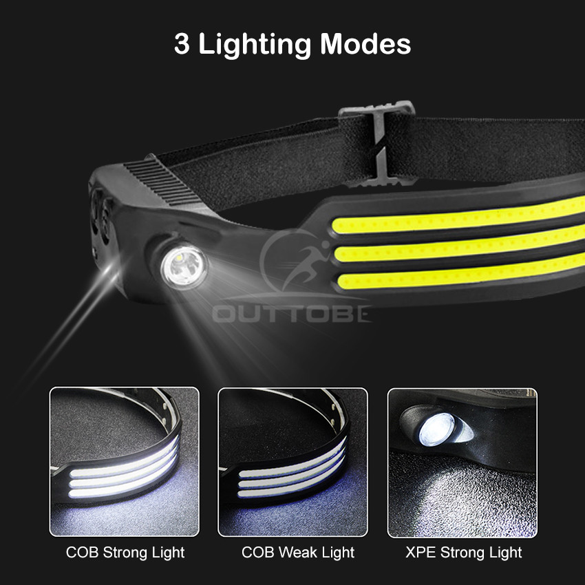 Outtobe LED COB Headlight USB Rechargeable Headlamp IPX6 Waterproof Light Headlamp Flashlight Camping Fishing Outdoor Hiking Headlamp head flash light rechargeable Head Lamp Head Light Wide Lighting